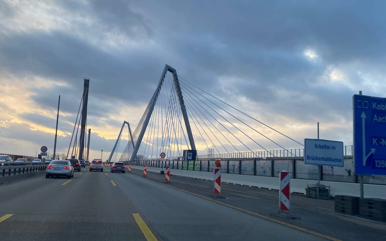Der Rückbau der alten Rheinbrücke bei Leverkusen läuft auf Hochtouren. Und auch die Arbeiten am Neubau der zweiten Brücke sind in vollem Gange. In der Nacht von Sonntag auf Montag (10.-11.11.) werden dafür jetzt die ersten großen Bauteile angeliefert. In insgesamt vier Nächsten kommen die bis zu 28 Meter langen Stahlteile mit 12 Schwertransporten zu der Baustelle, heißt es von der Autobahn GmbH.