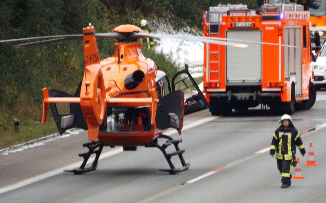 5 Verletzte nach Unfall auf A61 - Rettungshubschrauber im Einsatz