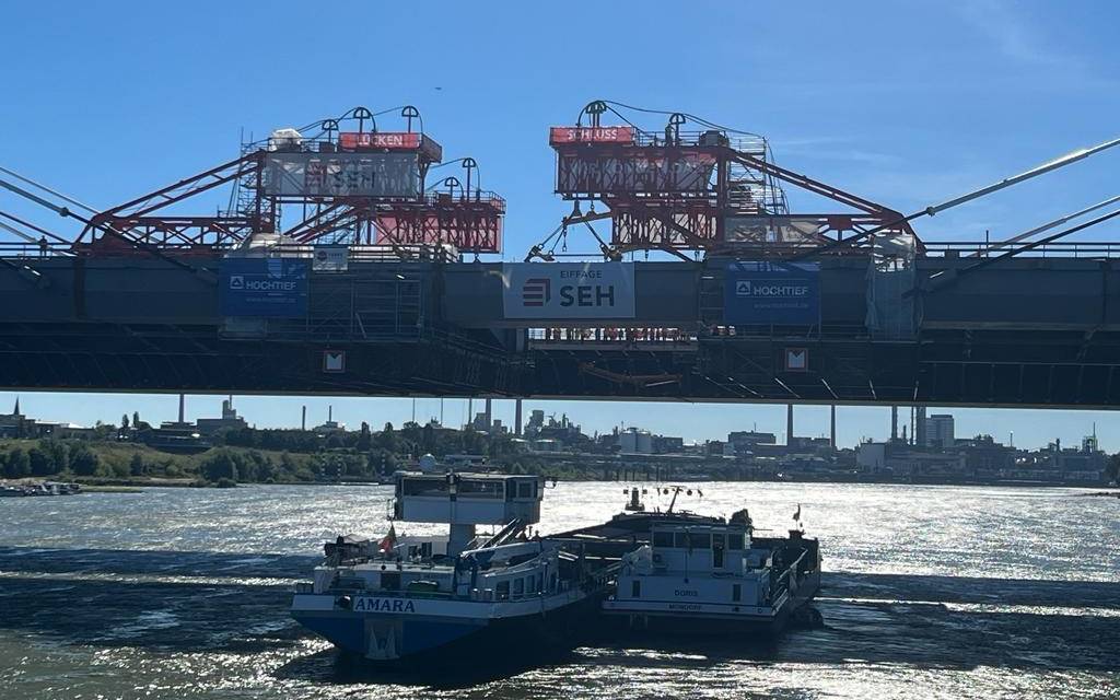 Der nächste Meilenstein des Neubaus der A1- Rheinbrücke Leverkusen ist erreicht. Am Dienstag wurden die letzten vier Stahlbauteile für das erste Brückenbauwerk über den Rhein angeliefert. Sie werden bis Ende der Woche montiert.
