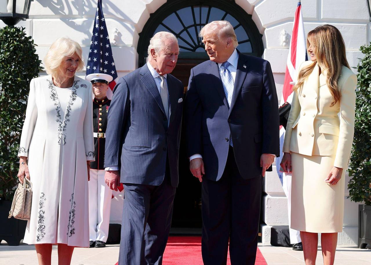 Am Montag waren Charles und Königin Camilla bei strahlendem Sonnenschein am Weißen Haus empfangen worden. Trump und Charles tauschten sich gut gelaunt aus, posierten mit Melania Trump und Camilla für ein Foto. Ein harmonisches Bild, ehe es zum Tee nach drinnen ging.