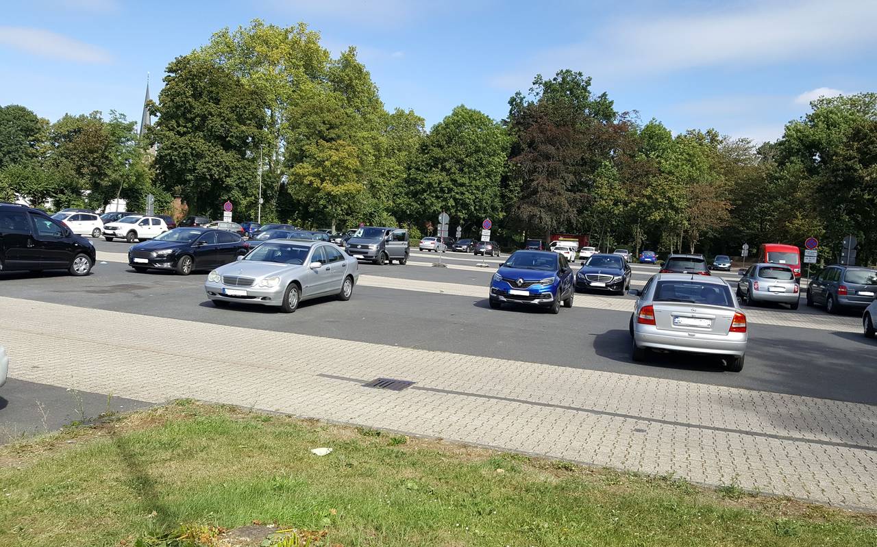Nach Angaben der Stadt Bedburg werden die mittleren und seitlichen Parkflächen im hinteren Teil des Platzes gesperrt.