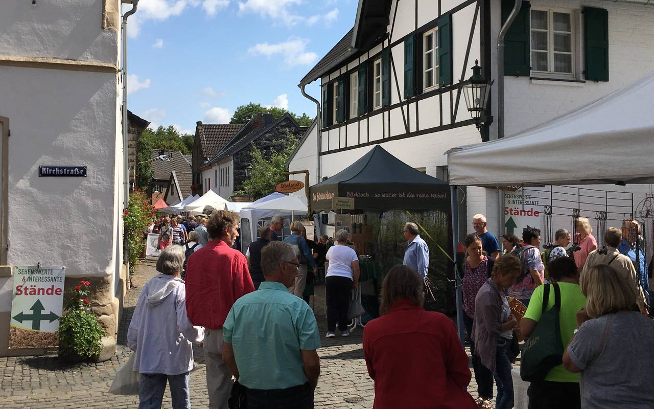 Der mittelalterliche Ortskern von Bedburg Alt-Kaster verwandelt sich an diesem Wochenende wieder in den Ricarda-Markt. Über 100 Aussteller bieten hier am Samstag und Sonntag Handgemachtes und Kunsthandwerk an.