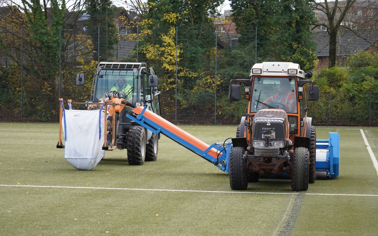 Die Stadt Frechen hat am 17. November angefangen, das problematische Kunststoffgranulat auf dem Kunstrasenplatz in Habbelrath durch Sand zu ersetzen. Wenn alles planmäßig verläuft, kann der seit Sommer gesperrte Platz bald wieder genutzt werden.