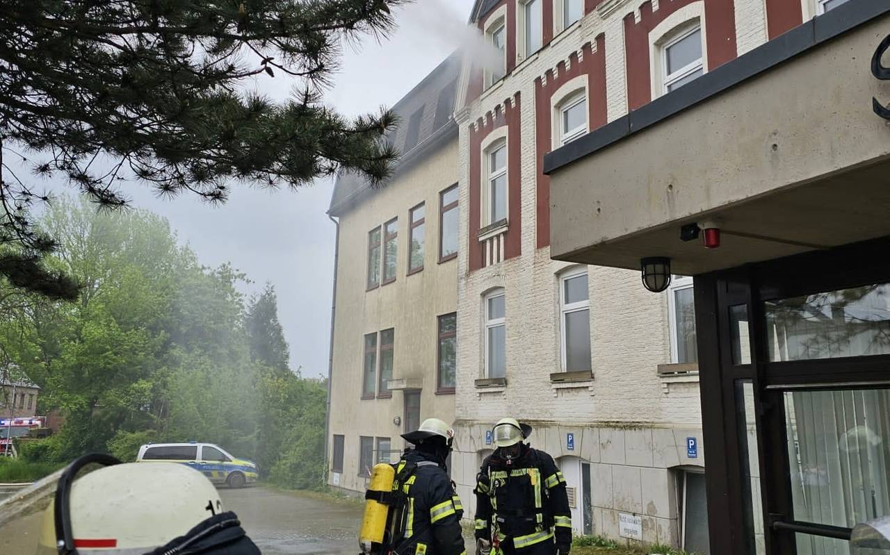 Großeinsatz der Feuerwehr am Samstag in Bergheim. Dort war der Dachstuhl eines leerstehenden Gebäudes in Fliesteden in Brand geraten. Als die ersten Kräfte "Am Alten Fließ" eintrafen, kam bereits dichter Rauch aus den Dachfenstern des ehemaligen Altenheims.