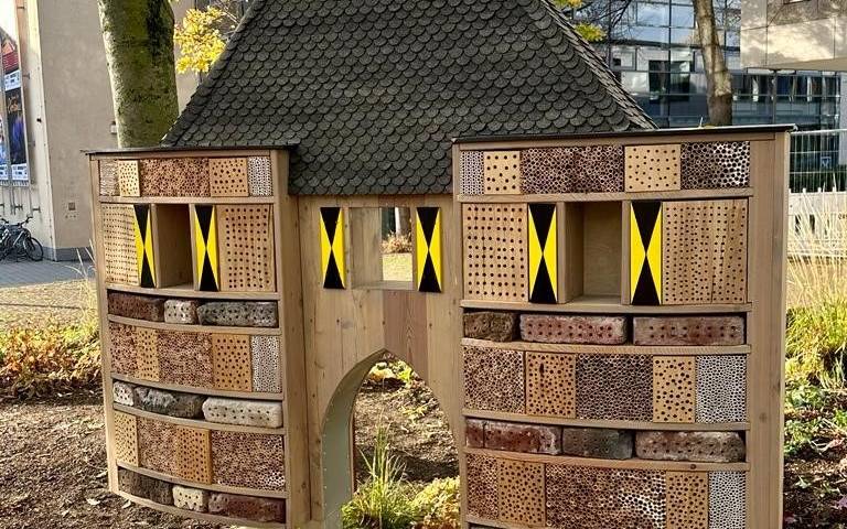 Insekten in Bergheim haben eine Luxus-Immobilie bekommen. Der städtische Betriebshof hat ein Insektenhotel in Form des Aachener Tors gebaut. Insgesamt sind über 6.100 „Zimmer“ entstanden. Verwendet wurden dabei Bambus, Backsteine, Papprohre, Lärchenholz und weiteres Baumaterial.