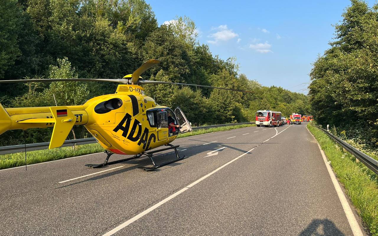 Er stürzte und verletzte sich dabei so schwer, dass er mit einem Rettungshubschrauber in ein Krankenhaus geflogen werden musste. Laut Polizei schwebt er in Lebensgefahr. Die L361 war wegen des Unfalls am Abend bis ca.20.30 Uhr gesperrt.