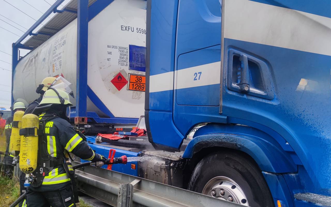 Die Helfer riefen umgehend die Kollegen der Feuerwehr zur Hilfe. Außerdem bekämpften sie den entstehenden Brand an der Zugmaschine zusammen mit dem Fahrer mit zwei Pulverlöschern. Als die Feuerwehr eintraf, waren schon keine Flammen an dem Fahrzeug mehr zu sehen. Nachdem noch die erhitzen Fahrzeugteile heruntergekühlt waren, konnte der Einsatz schließlich nach etwas eine Stunde beendet werden. Und der hätte durchaus auch schlimmer enden können – der Laster hatte einen ätzenden und leicht entzündlichen Stoff geladen.