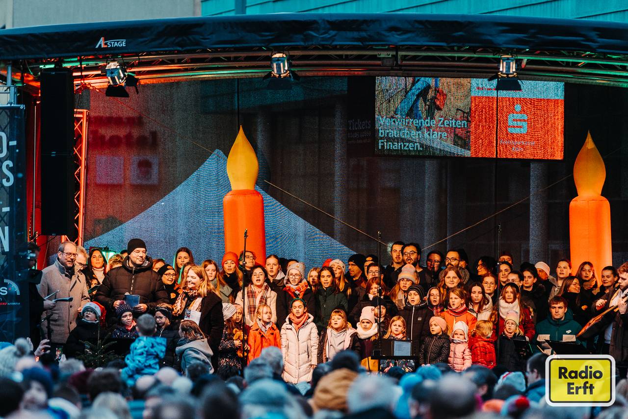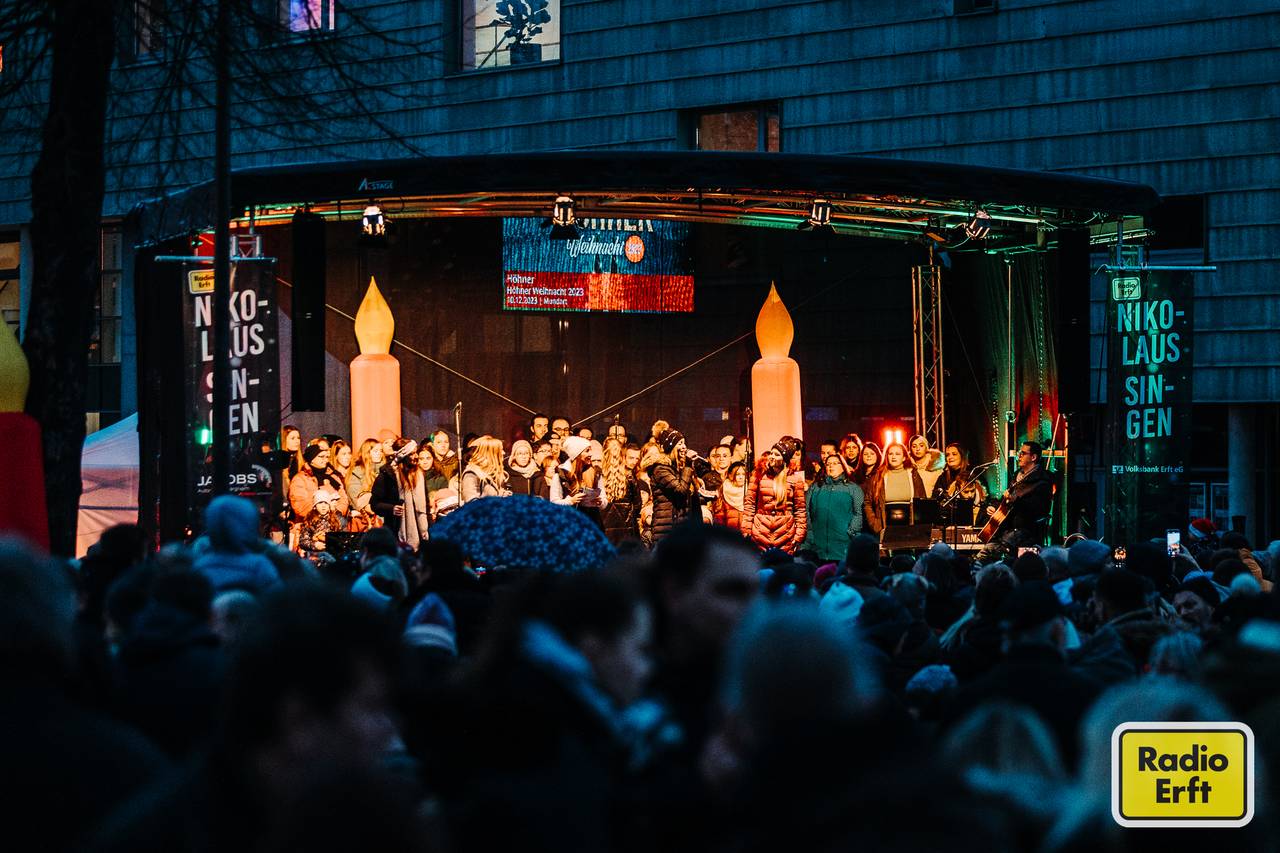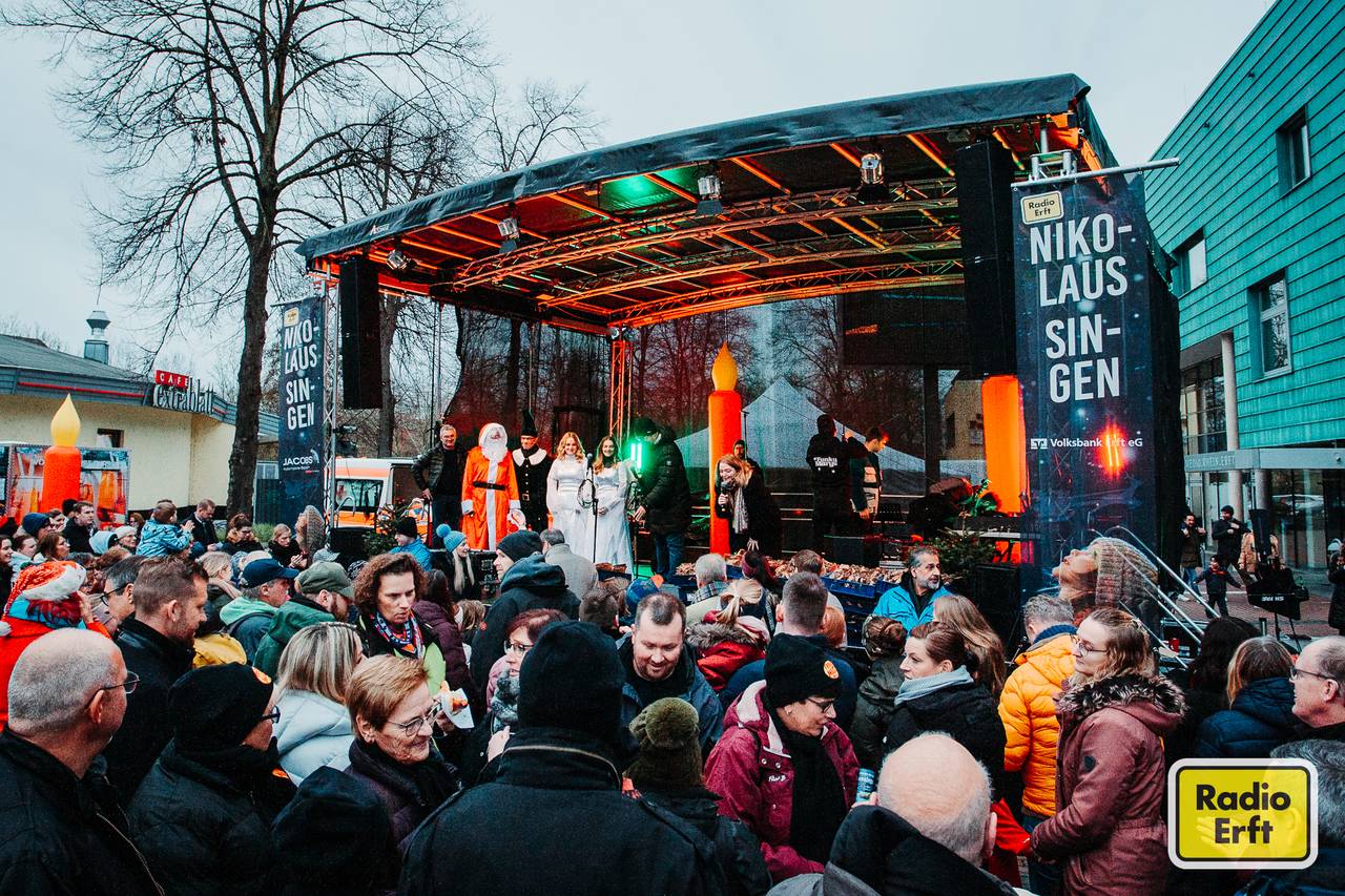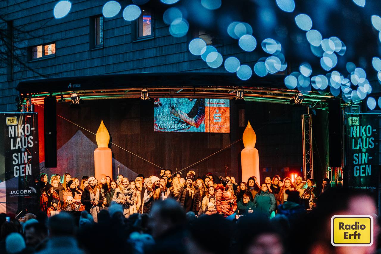 Ungewöhnlich warme Temperaturen und die Lust aufs gemeinsame Singen haben am 10.12.2023 Tausende Besucherinnen und Besucher in die Bergheimer Innenstadt gelockt. Auch das zweite Radio Erft Nikolaussingen war damit ein riesiger Erfolg. Wir haben die schönsten Bilder für euch mitgebracht.
