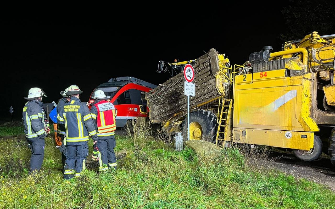In Bergheim ist am Mittwochabend ein Zusammenstoß zwischen einer Regionalbahn und einer Erntemaschine für Zuckerrüben glimpflich ausgegangen.