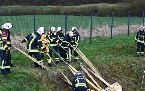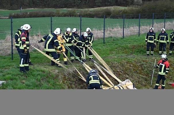 Ein Pferd landet im Graben und muss geborgen werden. Wie das geht, übt die Bergheimer Feuerwehr am Samstag bei einer sogenannten Großtierrettungsübung.