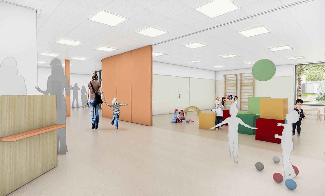 In Wesseling-Urfeld entsteht ein neuer Bildungspark mit Grundschule, Kita und Sporthalle. - Jetzt wurde der Siegerentwurf vorgestellt. Im Mittelpunkt steht ein Marktplatz, um den sich die drei Gebäude gruppieren. Alle drei bekommen großzügige Eingangsbereiche, auffällige Schriftzüge und sind nach Angaben des Architekten auf die Bedürfnisse ihrer Nutzer zugeschnitten.