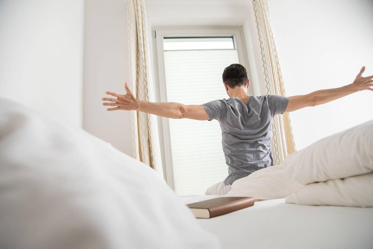 Es kann auch so aussehen: «Morgens nach dem Aufwachen sofort ein Glas Wasser mit Zitrone trinken und das Fenster öffnen, damit echtes Sonnenlicht auf die Augen fällt», sagt Simone Koch vor. Dazu eine Atemübung: «Tief einatmen, zehn Sekunden die Luft anhalten, langsam ausatmen.» Diese Kombination kann uns Power für den Start in den Tag geben.