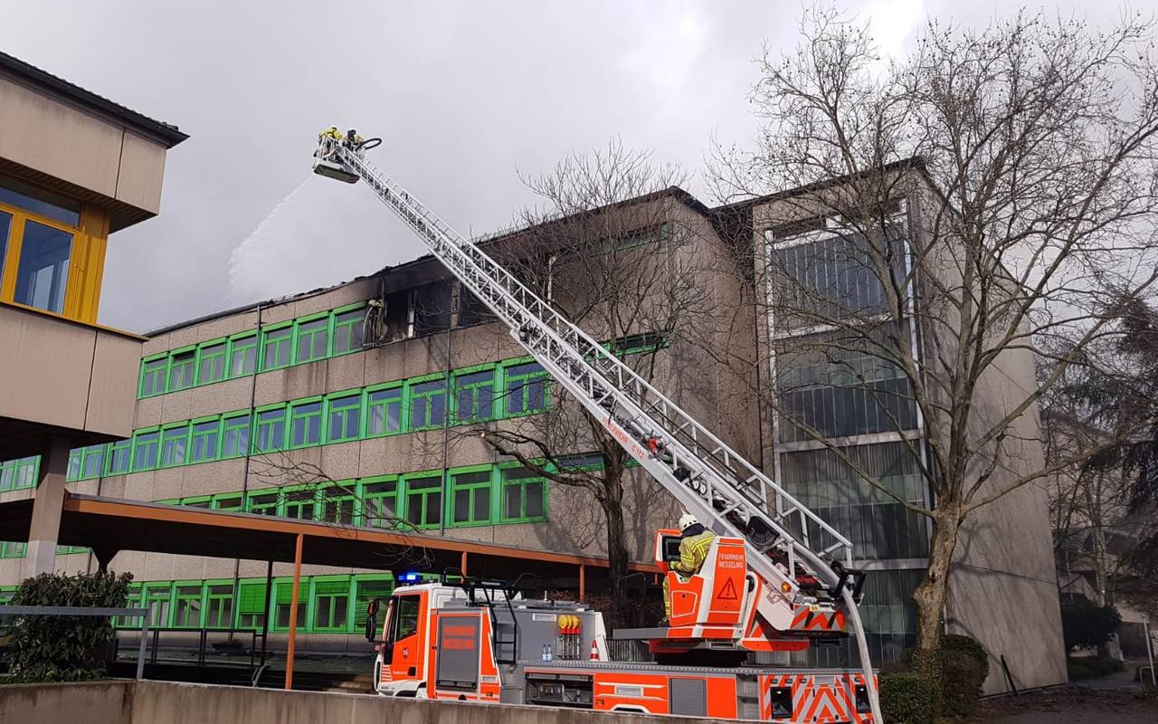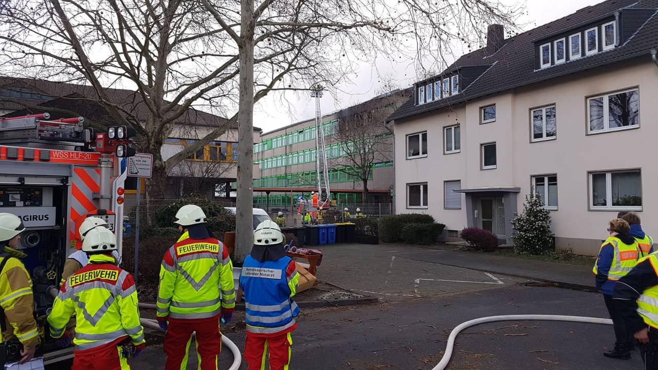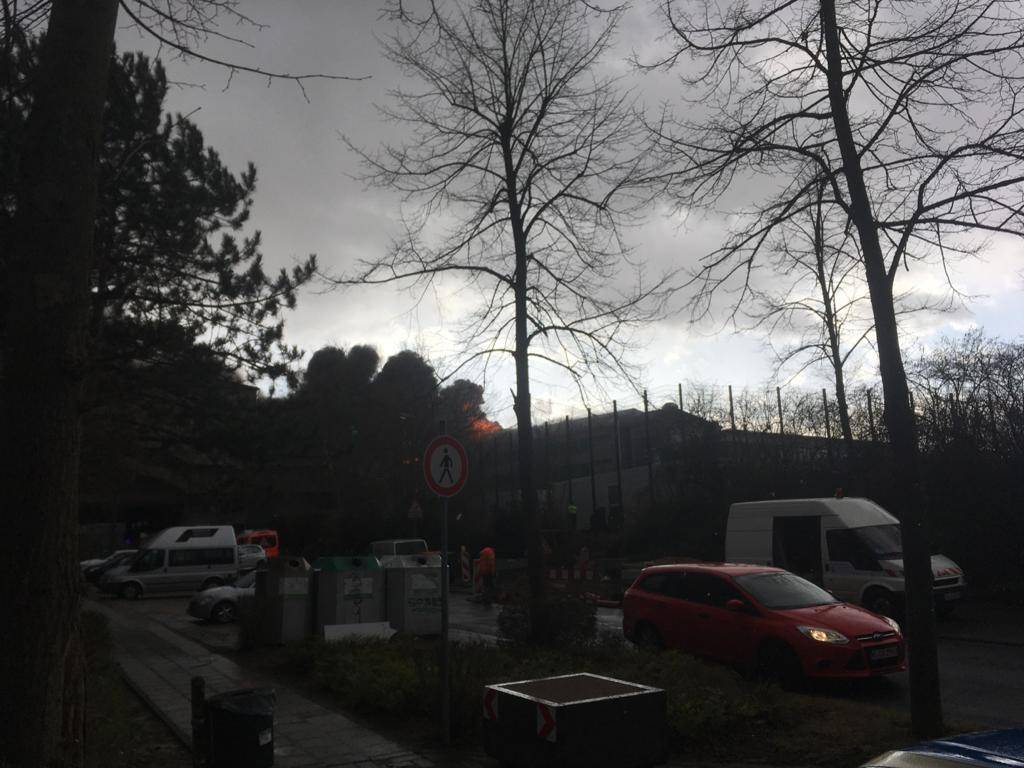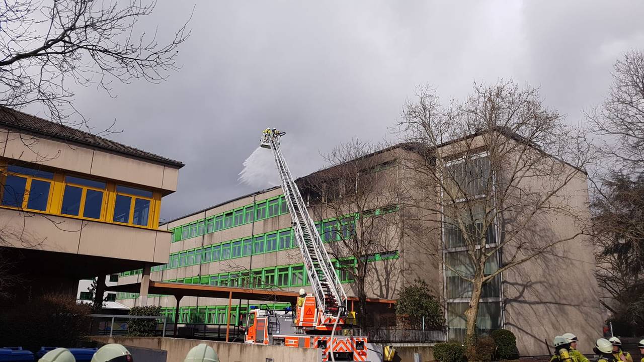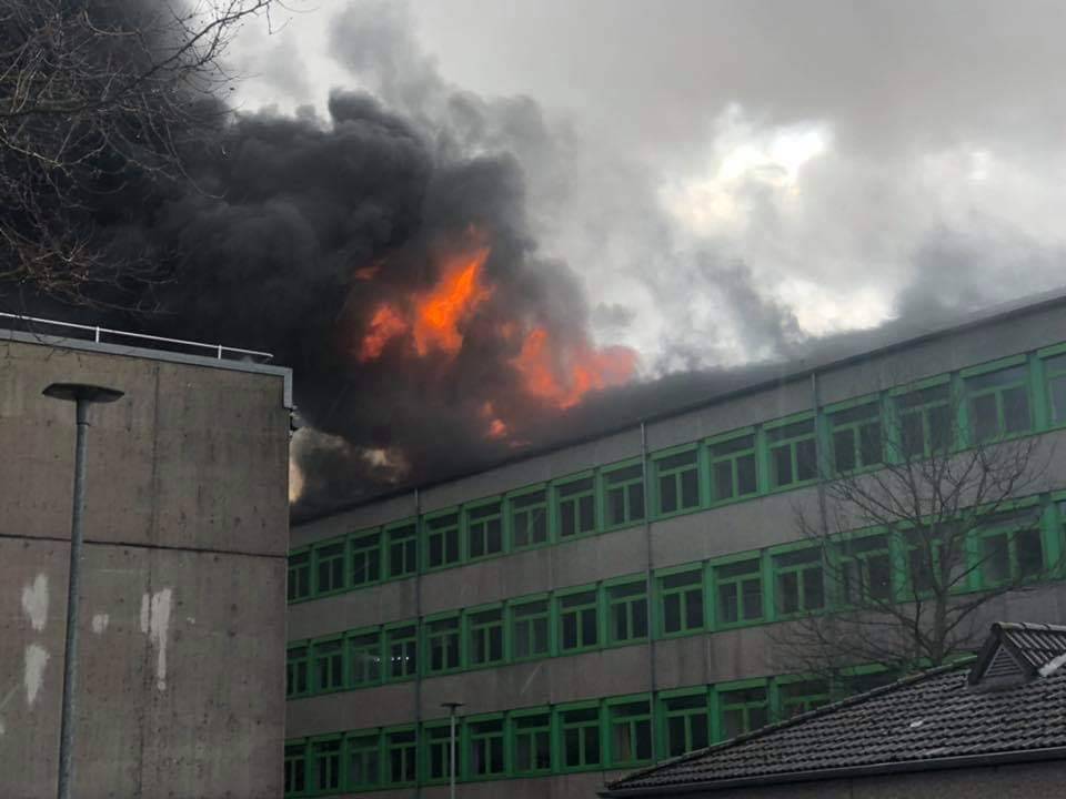Gegen 12 Uhr war das Feuer in dem leerstehenden Gebäude ausgebrochen – und schnell zog dichter, schwarzer Rauch über die Stadt. 1.400 Schüler mussten schnell aus dem Schulzentrum raus. Für Anwohner galt stundenlang eine offizielle Warnung, Türen und Fenster wegen der starken Rauchentwicklung geschlossen zu halten. Messungen der Luft haben aber keine Schadstoffe ergeben. Bis zu 100 Feuerwehrleute war vor Ort, sie kämpften von außen und innen gegen die Flammen – mussten sich aber zurückziehen, weil es im Gebäude plötzlich eine Durchzündung gab, einen so genannten Flashover.