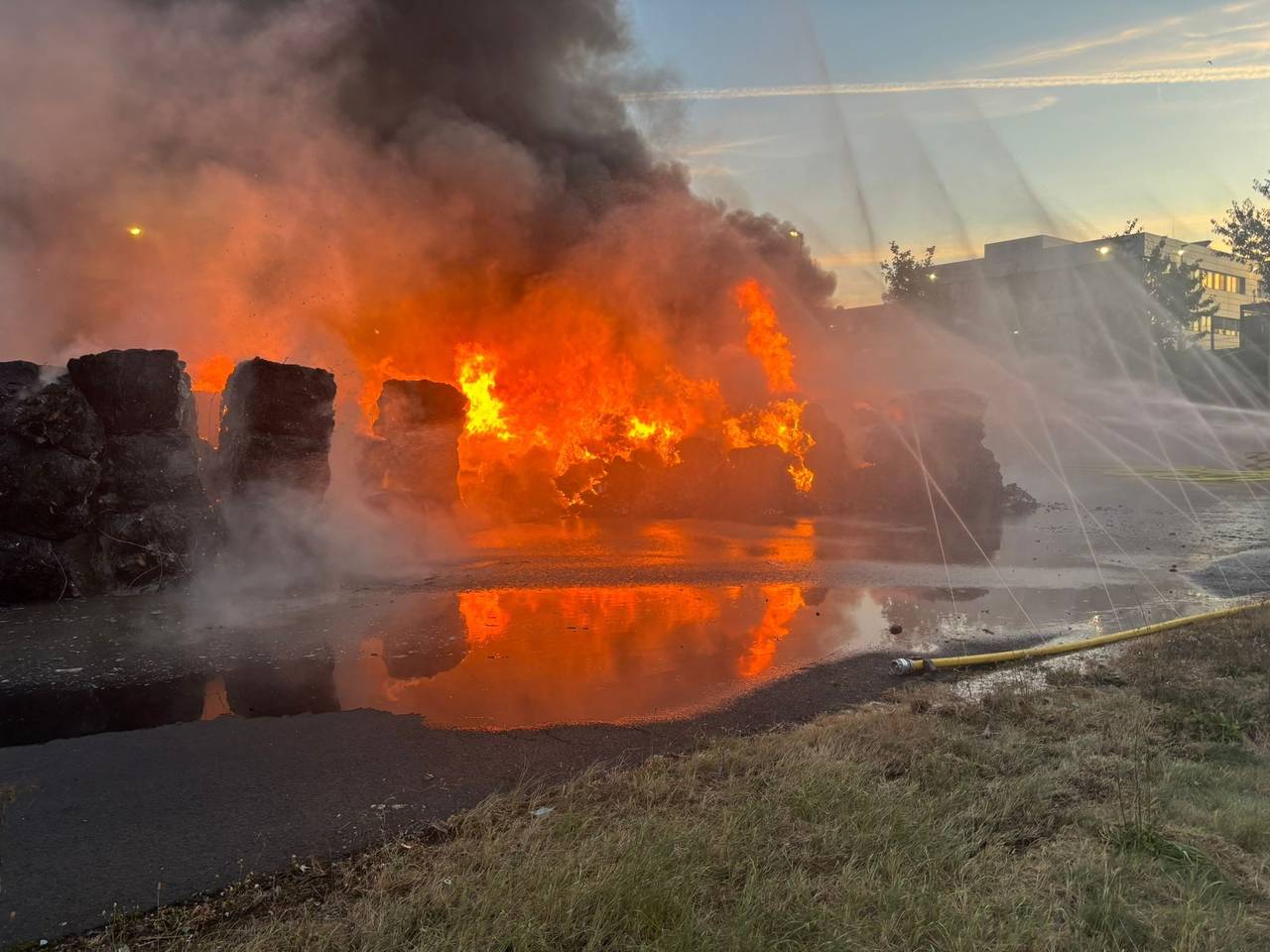 Vorsorglich löste auch die Warnapp NINA aus, Anwohner sollten Türen und Fenster geschlossen halten. Die Feuerwehr kontrolliert immer noch die Luft auf Schadstoffe – es bestand aber keine Gesundheitsgefahr für die Anwohner, heißt es. Der starke Qualm wurde weniger, als die Löschtrupps Schwerschaum einsetzten.