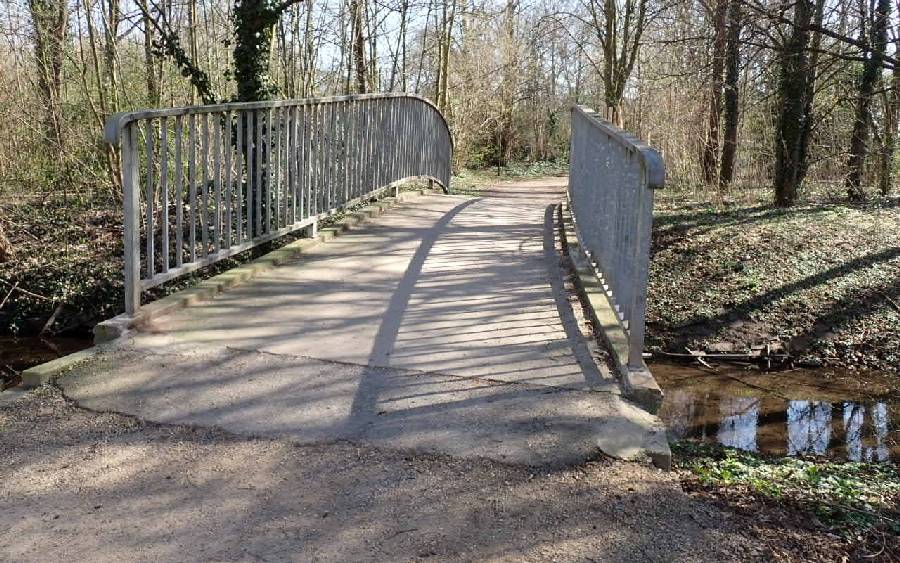Wegen statischer Probleme hat die Stadt Bergheim eine Fußgänger-Brücke bei der Albert-Schweitzer-Grundschule gesperrt. Sie führt über den Verbindungsarm der "Kleinen Erft" und dem "Erftflutkanal".