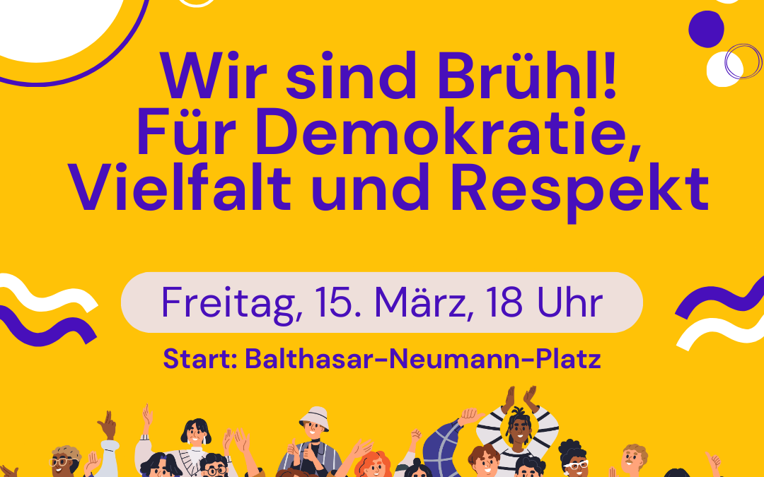 Anschließend findet eine Kundgebung mit Reden und Musik statt. Es sollen vor allem junge Menschen zu Wort kommen, denn es gehe um deren Zukunft, so die Organisatoren. Veranstaltet wird die Demonstration wieder von einem breiten Bündnis aus Initiativen und Parteien. Unter dem Slogan „Wir sind Brühl! Für Demokratie, Vielfalt und Respekt“ wollen die Initiatoren so dem zunehmenden Erstarken rechtsextremer Kräfte erneut entschieden entgegen treten.