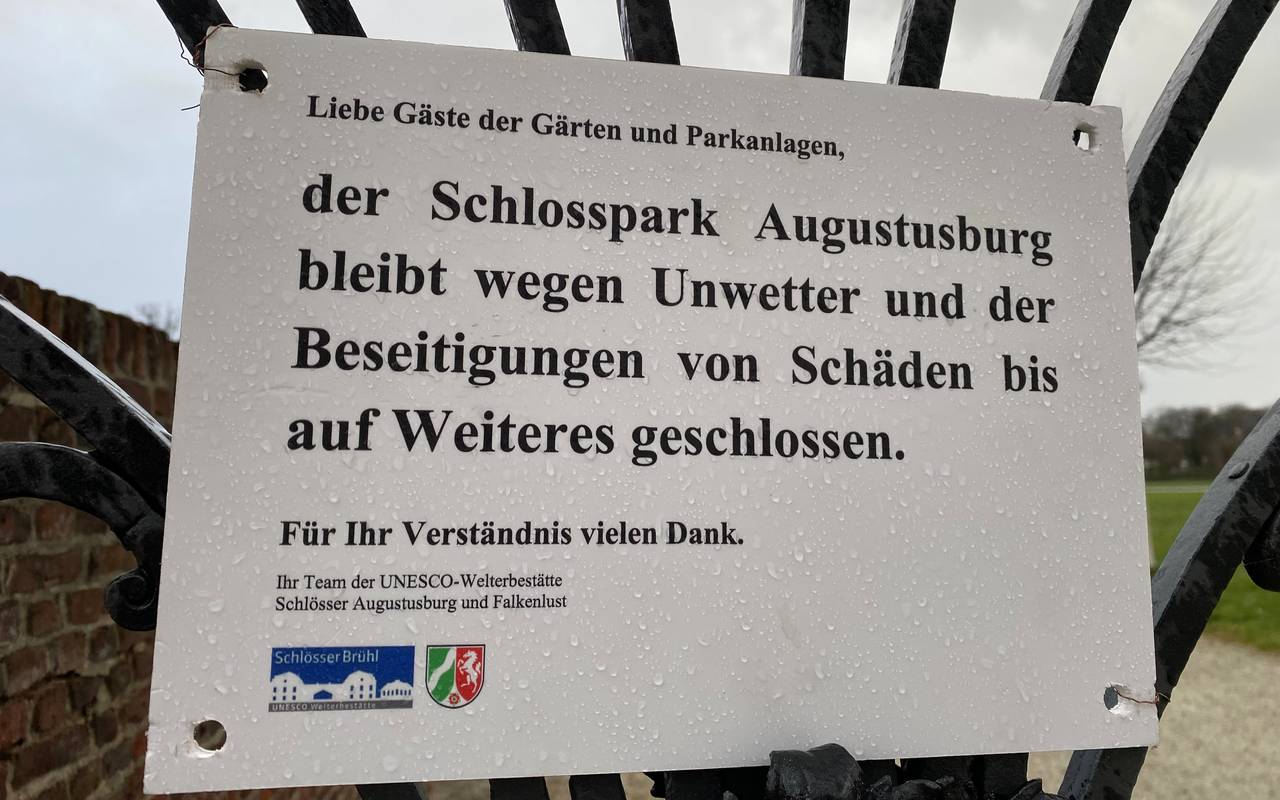 Der starke Wind an Rhein und Erft hat erste Auswirkungen. Der Schlosspark in Brühl ist wegen des Sturms aktuell bis auf Weiteres gesperrt. Wie lange ist noch unklar.