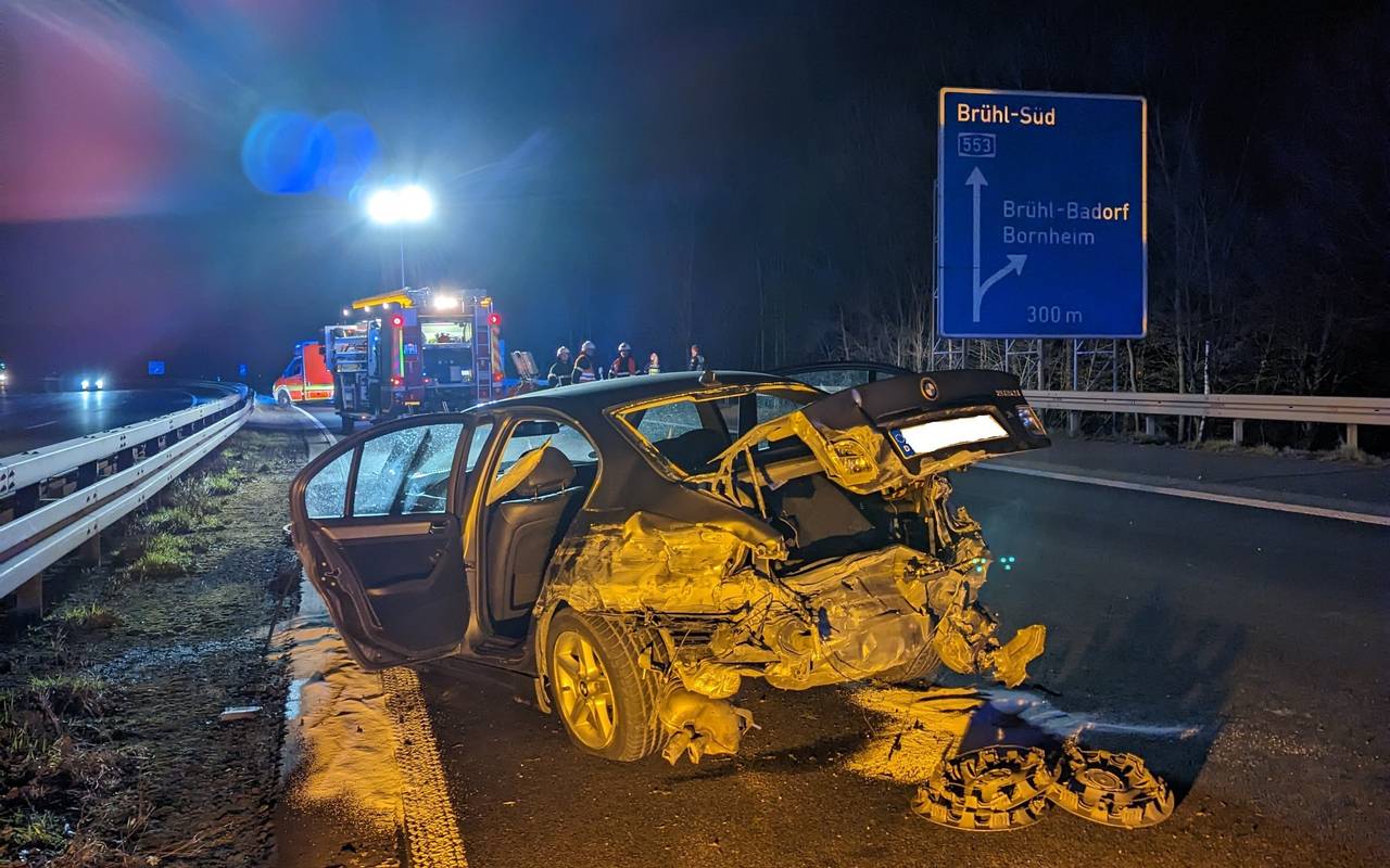 Um kurz vor Mitternacht hat es am Samstag auf der A 553 bei Brühl einen Unfall mit mehreren Verletzten gegeben. Laut der Feuerwehr Brühl war kurz vor der Anschlussstelle Brühl ein Wagen in die Leitplanken eingeschlagen und hat dabei auf mehreren hundert Metern ein Trümmerfeld hinterlassen.