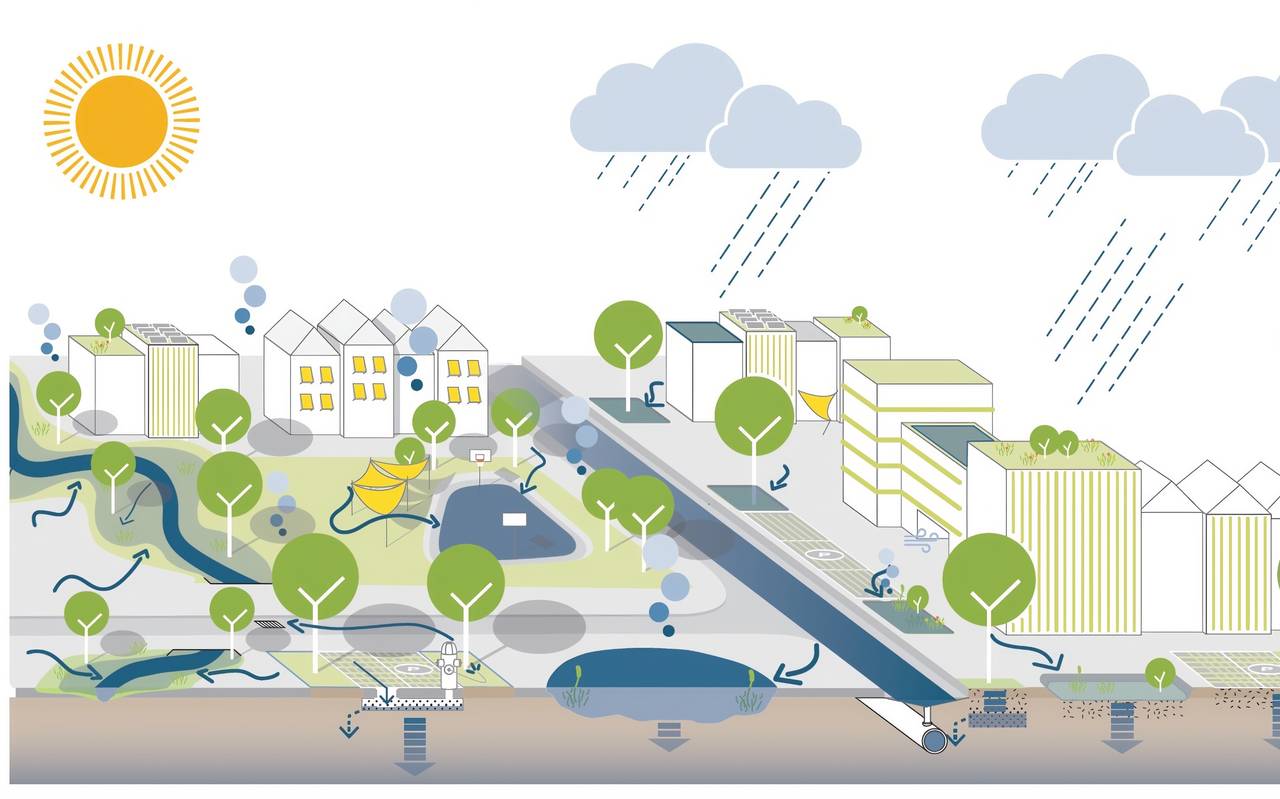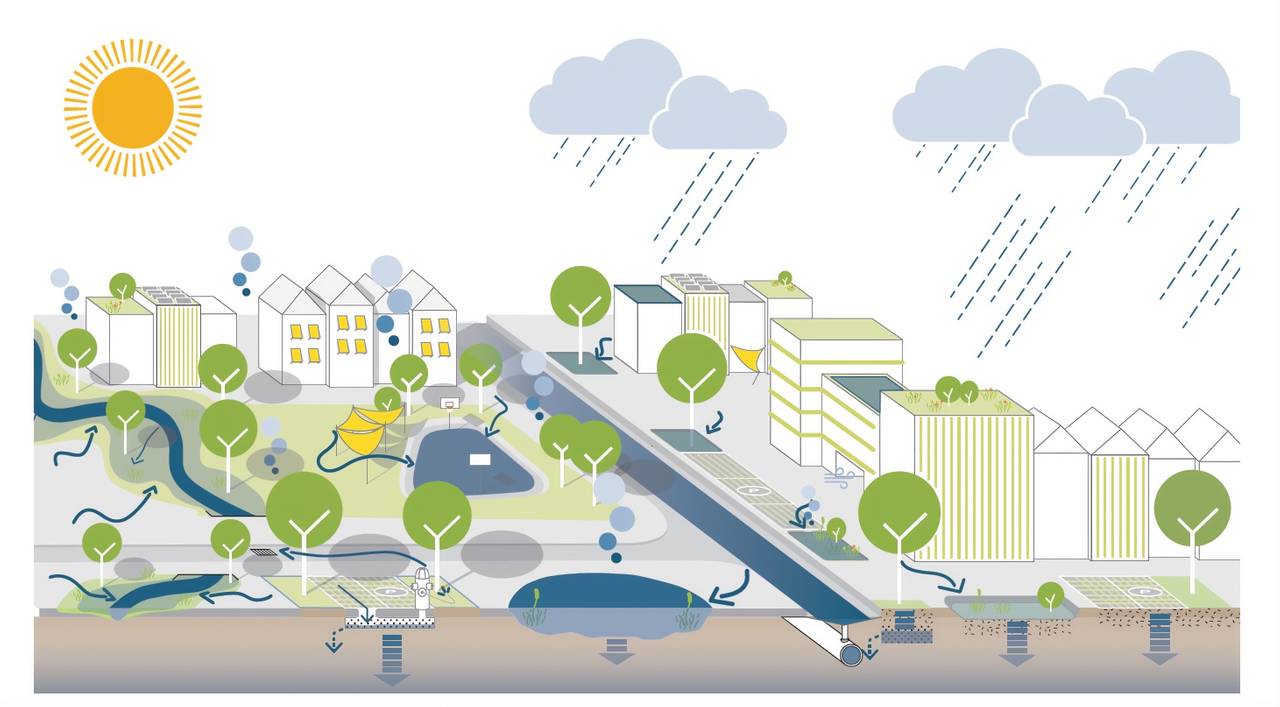 Ziel ist es, Regenwasser möglichst direkt vor Ort zu speichern. Es soll also nicht mehr schnell über die Kanalisation abfließen. Stattdessen soll das Wasser ähnlich wie in einem Schwamm in der Stadt gehalten werden.