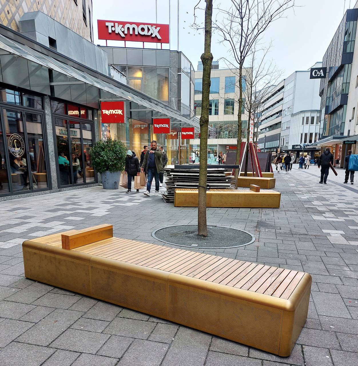 Für 400.000 Euro ließ die Stadt Wuppertal goldene, unbequeme Bänke für die Innenstadt herstellen. Eine solche Steuerverschwendung findet der Bund der Steuerzahler in NRW-Kommunen immer wieder© BdSt NRW