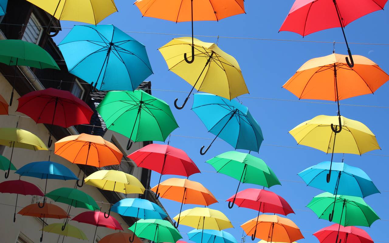Bunte Schirme über der Wesselinger City
