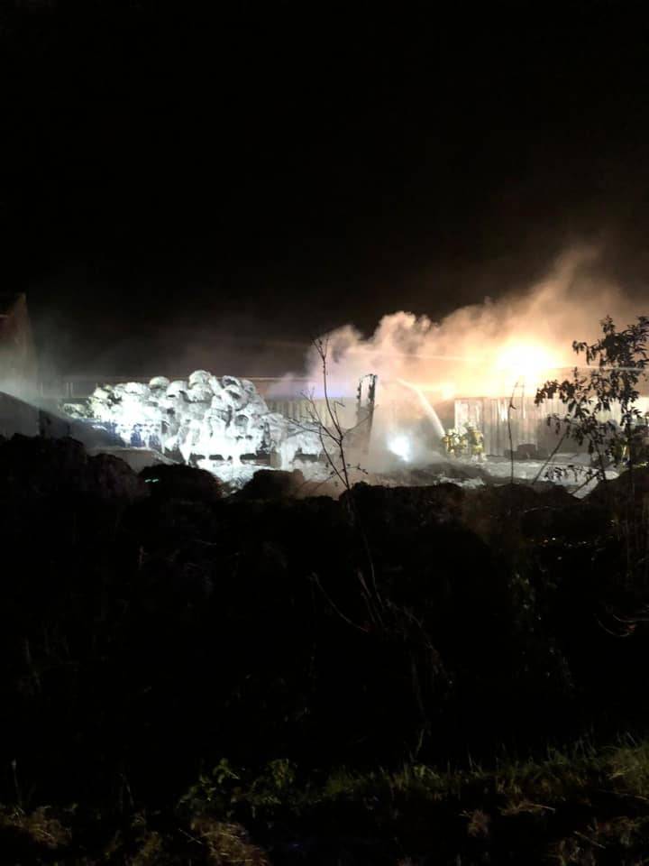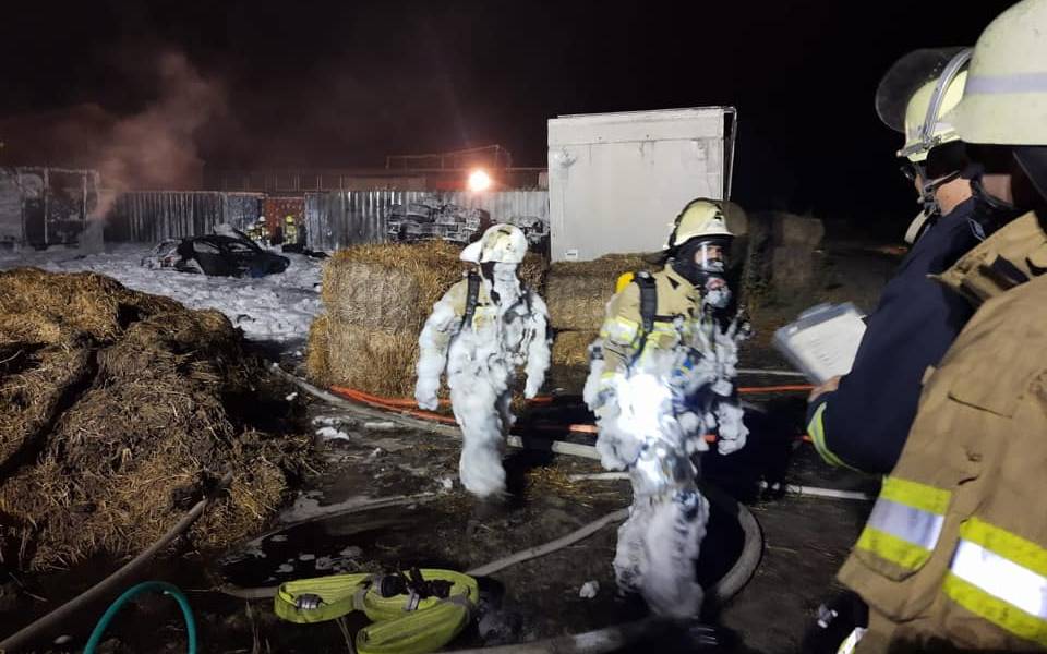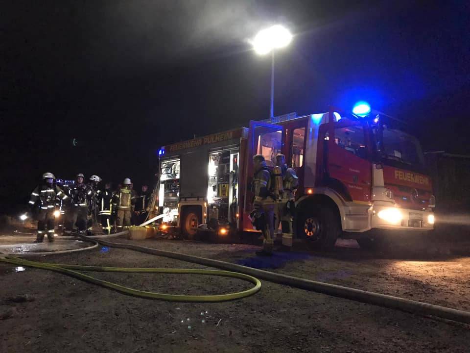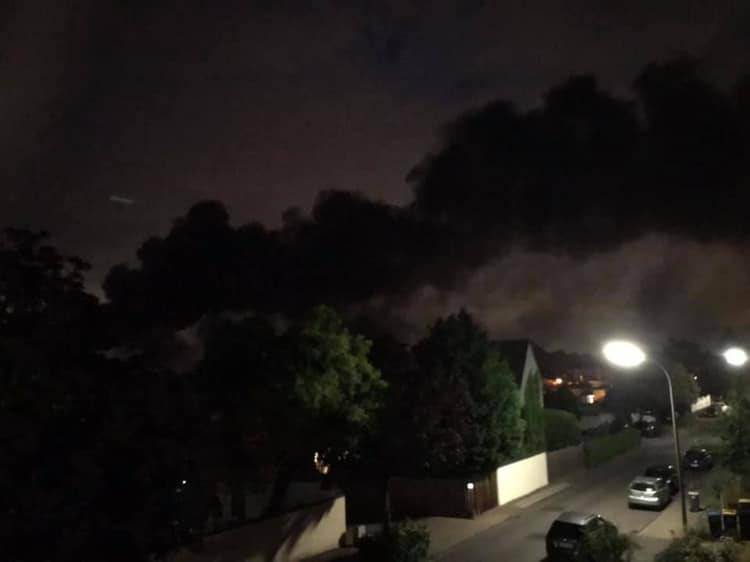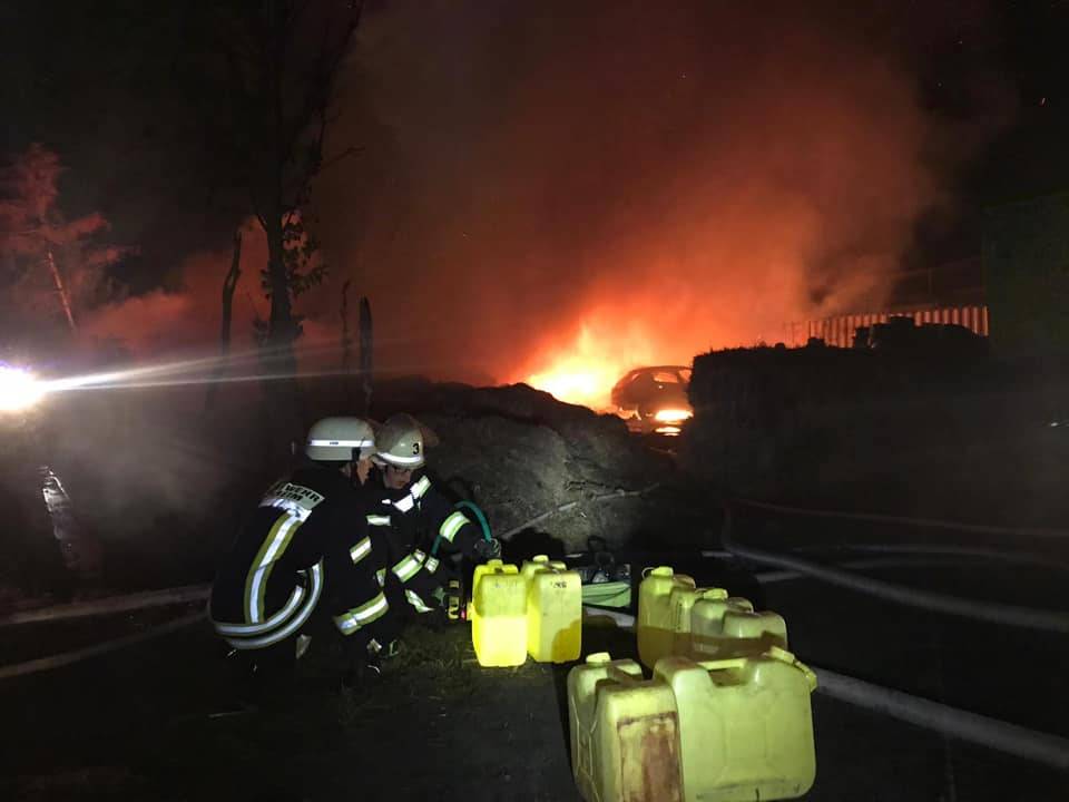 Nach dem Großbrand in Pulheim-Dansweiler Montagabend prüft die Polizei einen Zusammenhang zu einem Brand vor rund anderthalb Wochen. Damals standen auch Autoreifen und Strohballen auf dem Gelände in Flammen.