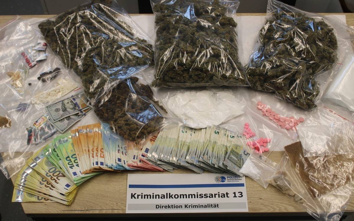 Mehrere Beutel Marihuana, insgesamt ein ganzes Kilo haben zwei Drogenspürhunde am Montag in Hürth erschnüffelt. Außerdem fanden die Tiere Amphetamine, Kokain, Ketamin und einige Ecstasy-Pillen in der Wohnung an der Theresienhöhe.