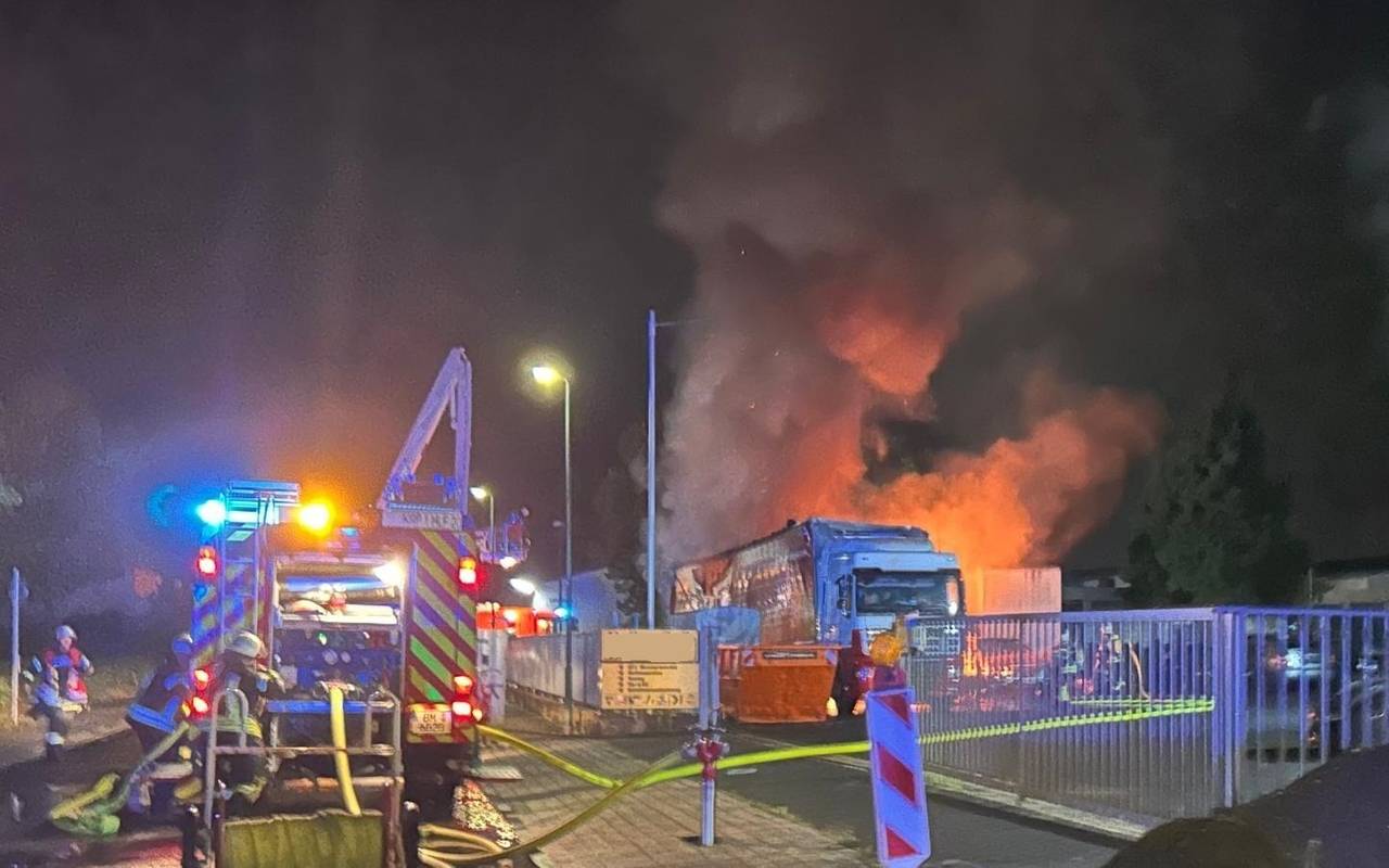 In Kerpen sind in der Nacht mehrere Fahrzeuge auf einem Firmengelände durch ein Feuer beschädigt oder zerstört worden. Die Feuerwehr konnte ein Übergreifen der Flammen auf weitere Fahrzeuge verhindern.