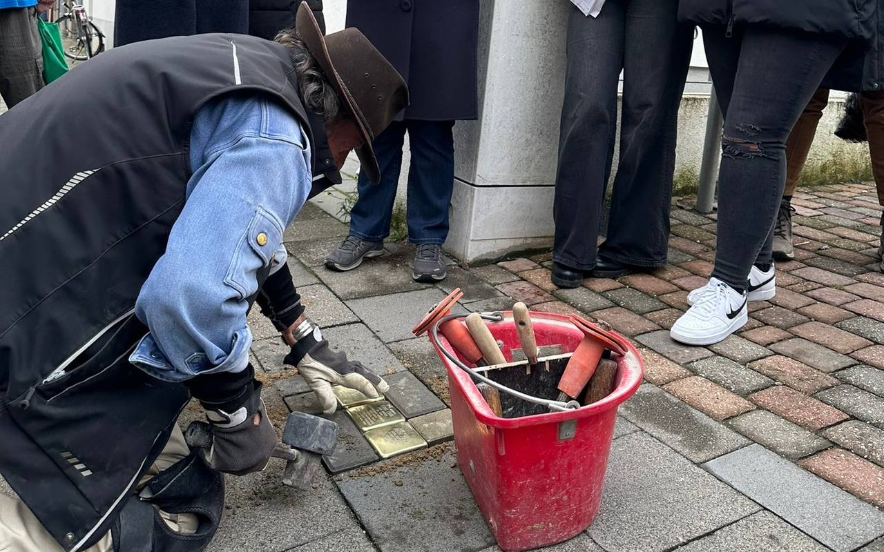 In Elsdorf gibt es jetzt 20 neue Stolpersteine – zum Beispiel an der Köln-Aachener Straße. Dort erinnern jetzt drei kleine Gedenktafel aus Messing im Bürgersteige an das Schicksal der Familie Zinn, verlegt vom Erfinder der Stolpersteine, Gunter Demnig.