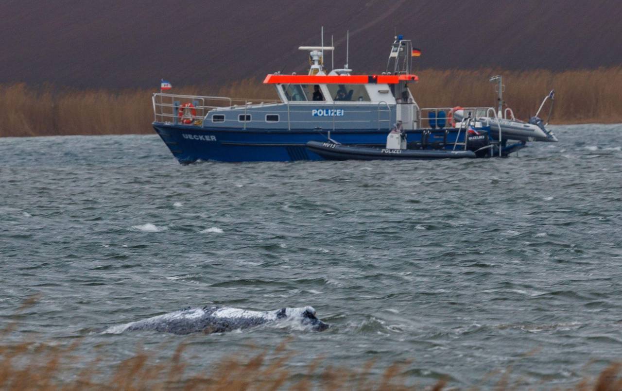 Auf Livestreams war zu sehen, wie der Wal nahe von Fahrwassertonnen wieder auf Grund liegt. Er liege nach vorliegenden Erkenntnissen nicht vollständig auf, sagte Mecklenburg-Vorpommerns Umweltminister Till Backhaus (SPD) am frühen Mittag. «Er könnte nach links ohne weiteres ausweichen, um dann in tiefes Fahrwasser zu kommen, um ihn dann aus dem Kirchsee herauszuführen.»