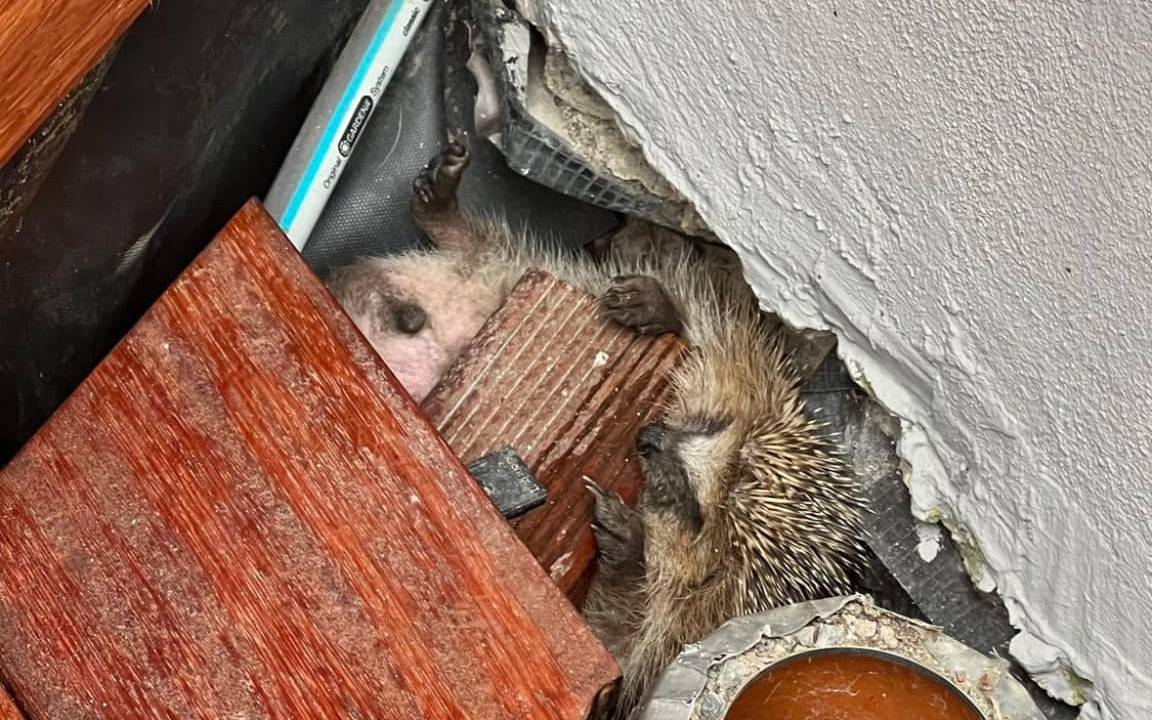 Der Hausbesitzer hörte die Befreiungsversuche des Igels, konnte aber nicht helfen und rief die Feuerwehr. Die sah nach eigenen Angaben keine andere Möglichkeit, als eine kleine Öffnung in die Holzdielen zu sägen und das Tier herauszuholen. Es war aber unverletzt und wurde dann in eine Igel-Aufzuchtstation in Friesheim gebracht.