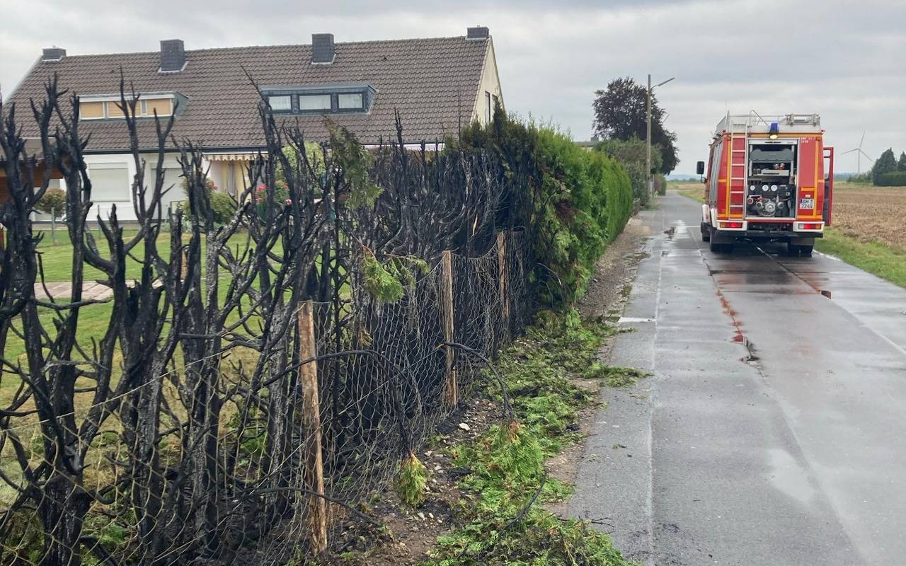 Erftstadt: Heckenbrand durch Unkrautbrenner