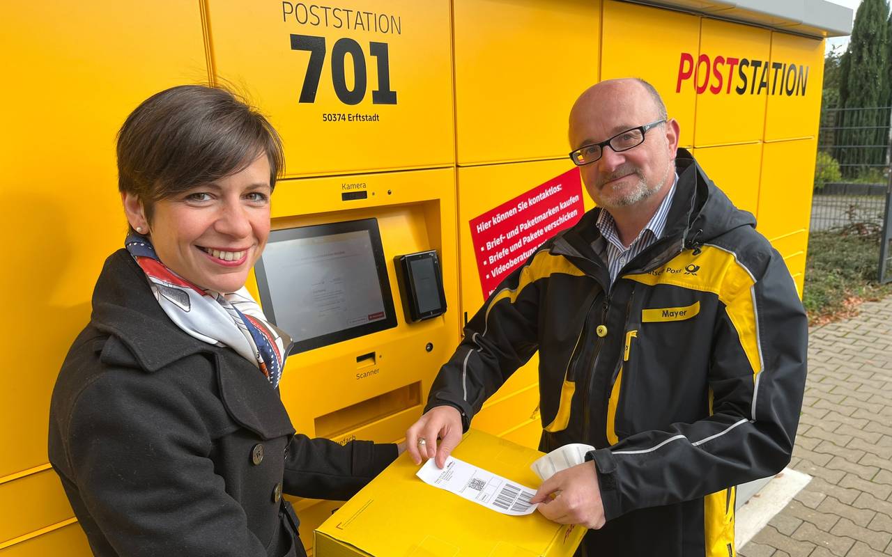Die Erftstädter können dort Brief- und Paketmarken kaufen, Einschreiben aufgeben und Pakete empfangen und auch verschicken. Der Postautomat steht an der Straße „Zum Gänsgraben“ am Discounter.