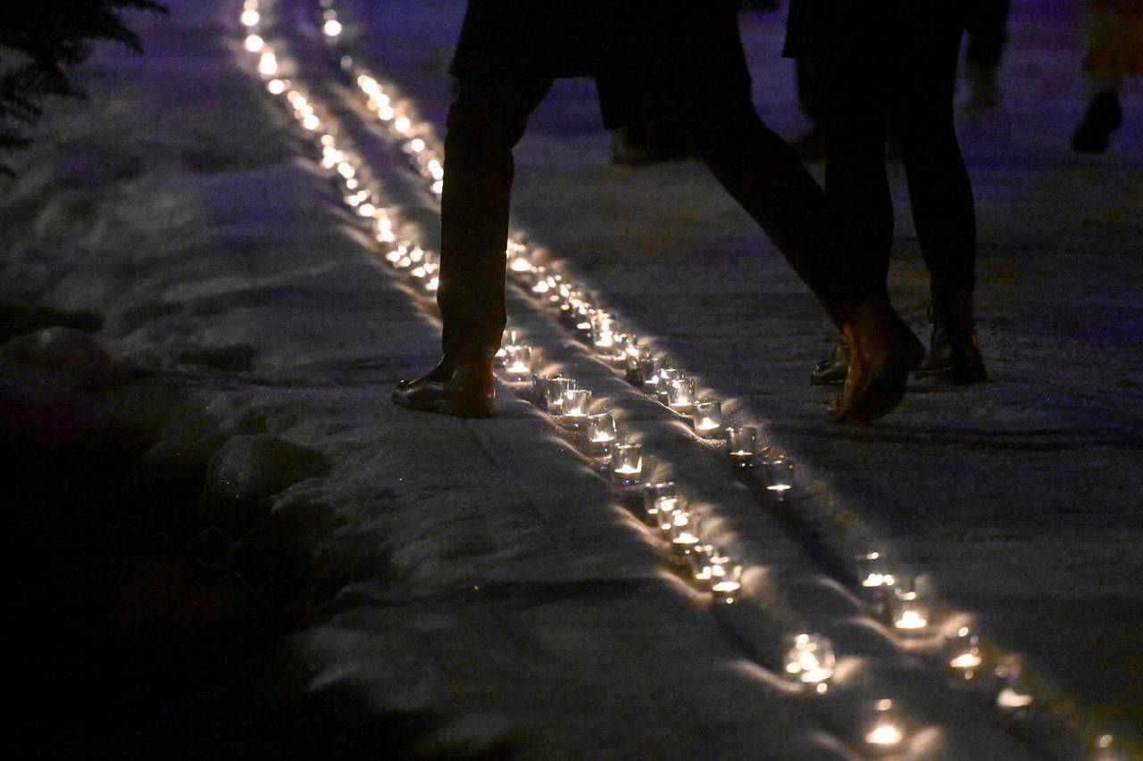 Am Ende setzten die Besucher Kerzen in ein Stück Loipe aus extra von Helfern angekarrtem Schnee - eine leuchtende Spur in der Nacht.