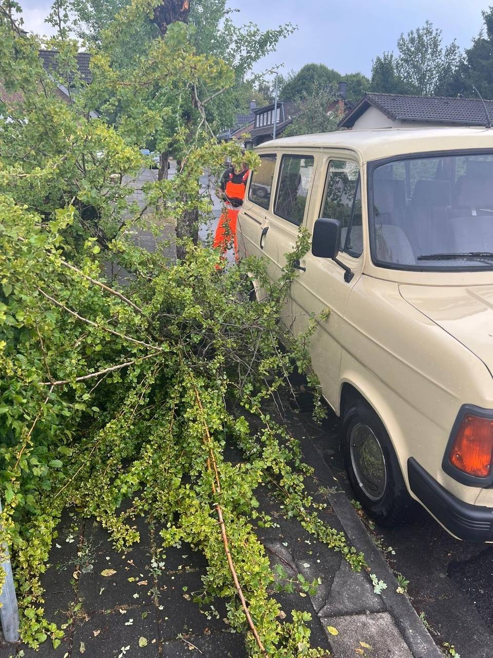 Eine erste Gewitterzelle gab es schon über Bergheim. Am Nachmittag sind hier einige Bäume durch Orkanböen umgestürzt. Insgesamt musste die Feuerwehr zu 15 wetterbedingten Einsätzen ausrücken.