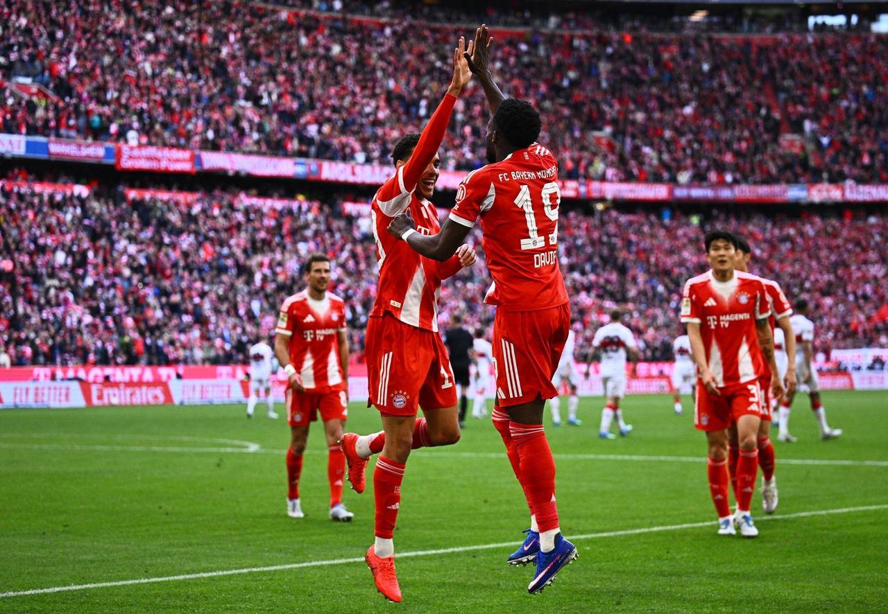 Raphaël Guerreiro (31. Minute), Kanes Ersatzmann Nicolas Jackson (33.) und Alphonso Davies (37.) drehten schon in den ersten 45 Minuten den Rückstand durch Chris Führich (21.). Vor 75.000 Zuschauern schraubte dann der eingewechselte Kane (52.) den Torrekord des deutschen Rekordmeisters auf sagenhafte 109. Chema (88.) traf für Stuttgart kurz vor Schluss noch zum Endstand.