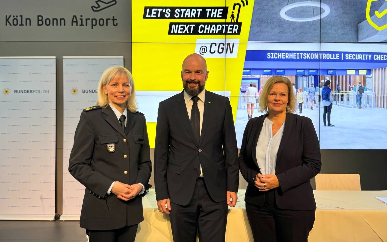 Der Flughafen Köln/Bonn wird ab dem 1. Januar die Sicherheitskontrollen eigenständig organisieren und damit die Verantwortung von der Bundespolizei übernehmen. Der Vertrag für diese Umstellung wurde am Montag (25. November) von Bundesinnenministerin Nancy Faeser und dem Geschäftsführer des Flughafens unterzeichnet.