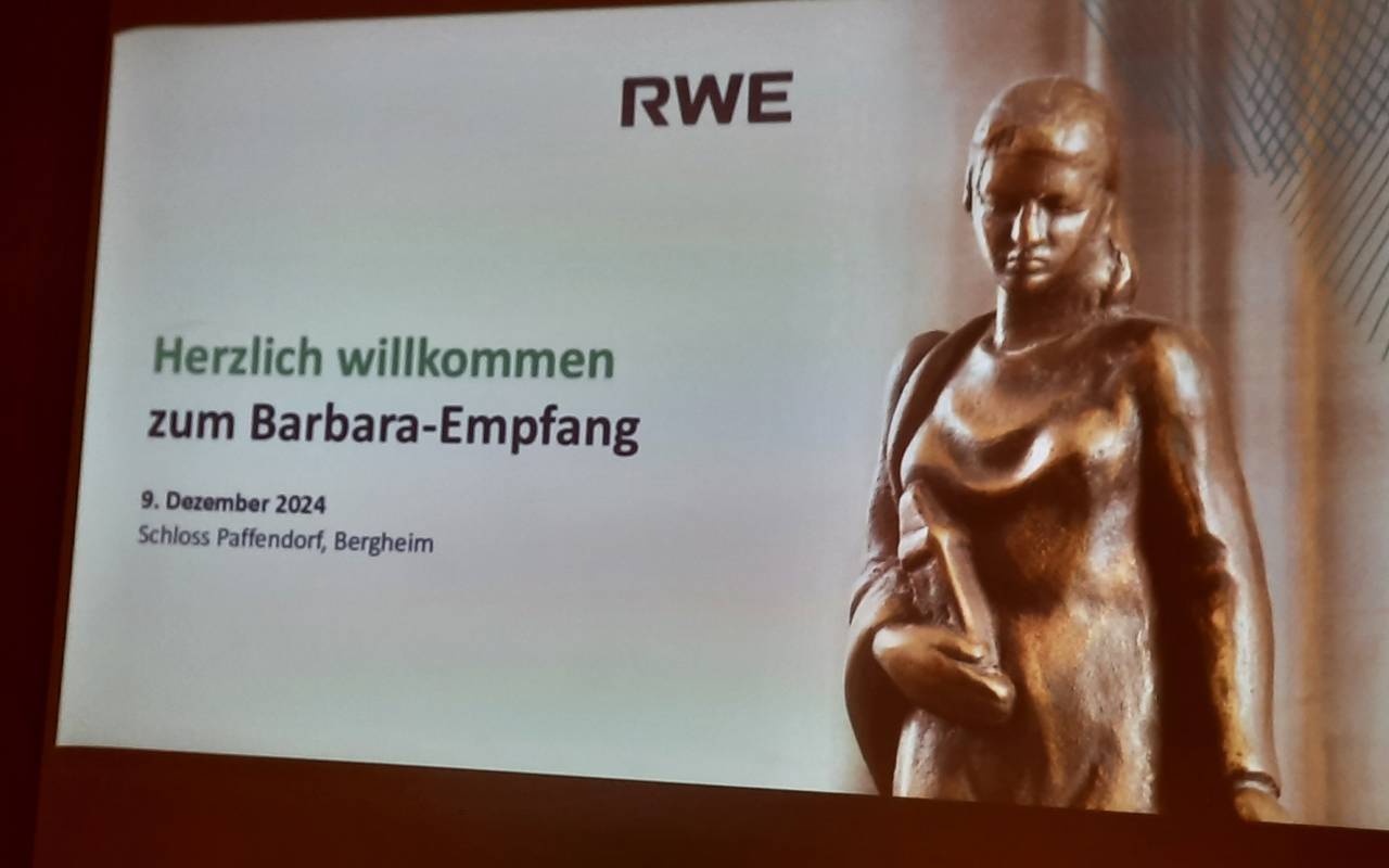 Beim traditionellen Barbara-Empfang auf Schloss Paffendorf am Montagabend (9. Dezember) betonte RWE Power-Chef Frank Weigand die Fortschritte im Strukturwandel im Rheinischen Revier. RWE leistet dabei nach seinen Angaben einen wichtigen Beitrag. Ein gutes Beispiel sind für Weigand die Solarparks im Tagebau Hambach. Sie sollen so lange in Betrieb bleiben und Strom aus Sonnenenergie erzeugen, bis der See entsprechend befüllt ist. Für Weigand zeigt das Projekt zudem, wie gut die Zusammenarbeit mit den sechs Anrainerkommunen funktioniert, denn sie sind mit 49 Prozent an den Solarparks beteiligt.