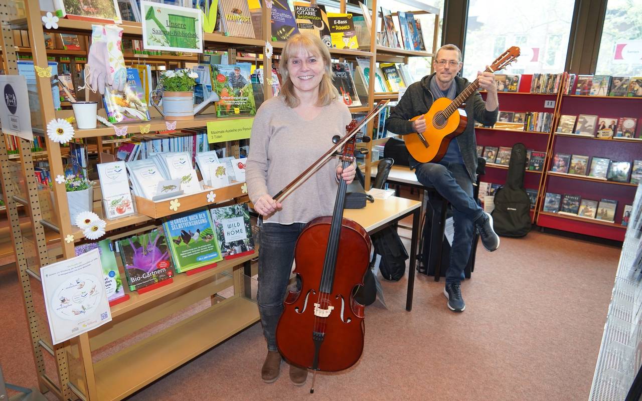 In der Frechener Stadtbücherei kann man sich jetzt nicht nur Bücher und andere Medien ausleihen, sondern auch Instrumente. Zusammen mit der Musikschule bietet die Stadtbücherei Instrumente wie Gitarre, Celle, Violine, E-Bass und weitere an.