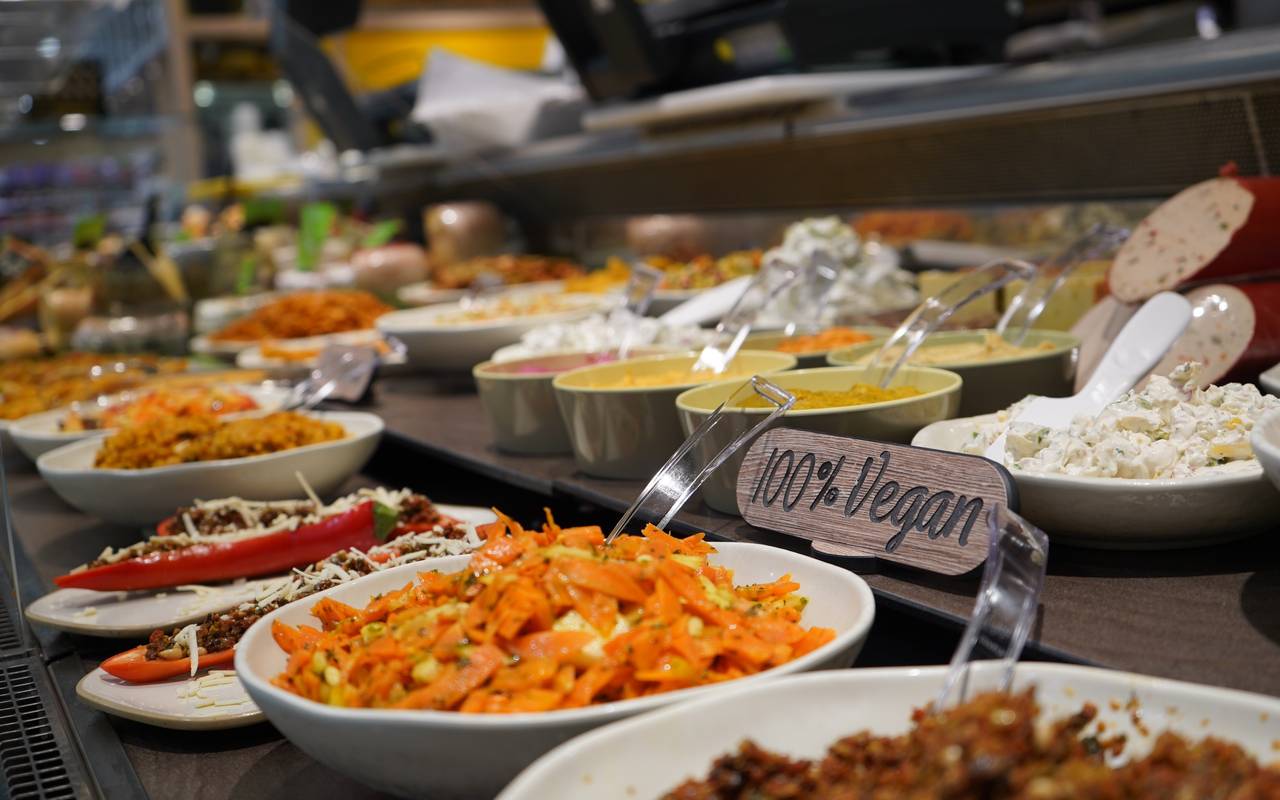 Neben veganem Hack, Schnitzel und Aufschnitt gibt es auch Salate, Gemüsespieße, Aufstriche und Feinkost aus eigener Herstellung im Angebot. Auch Rewe testet seit einiger Zeit vegane Bedientheken, unter anderem in Erftstadt-Lechenich und Köln.