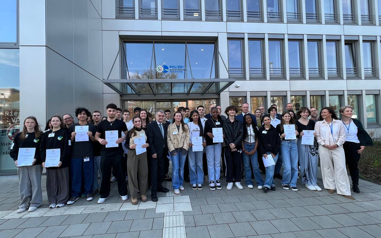 Ein neuer Podcast der Polizei im Rhein-Erft-Kreis klärt über Cybergrooming auf und ist in 17 Sprachen verfügbar. Schülerinnen und Schüler der Realschule Frechen haben ihn aufgenommen. Das würdigt NRW-Innenminister Herbert Reul bei einem Besuch im Kreis.