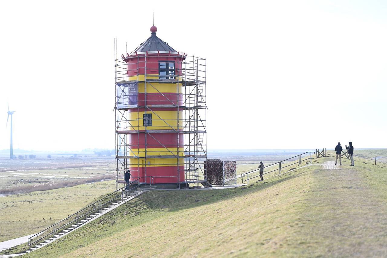 Pilsum (dpa) - Eines der bekanntesten Wahrzeichen Niedersachsens hat in den vergangenen Tagen einen neuen Farbanstrich bekommen – ein spezieller Metalllack sorgt dafür, dass der Pilsumer Leuchtturm in Ostfriesland trotz rauer Nordseeluft auch weiterhin rot und gelb strahlt. Den Anstrich übernahmen Mitarbeiter der Deichacht Krummhörn (Landkreis Aurich). «Wir kennen ja den Hype um den Turm», sagt der Rendant der Deichacht, Frank Rosenberg. «Wir machen das daher mit ganz viel Freude im Rahmen unserer Möglichkeiten.»