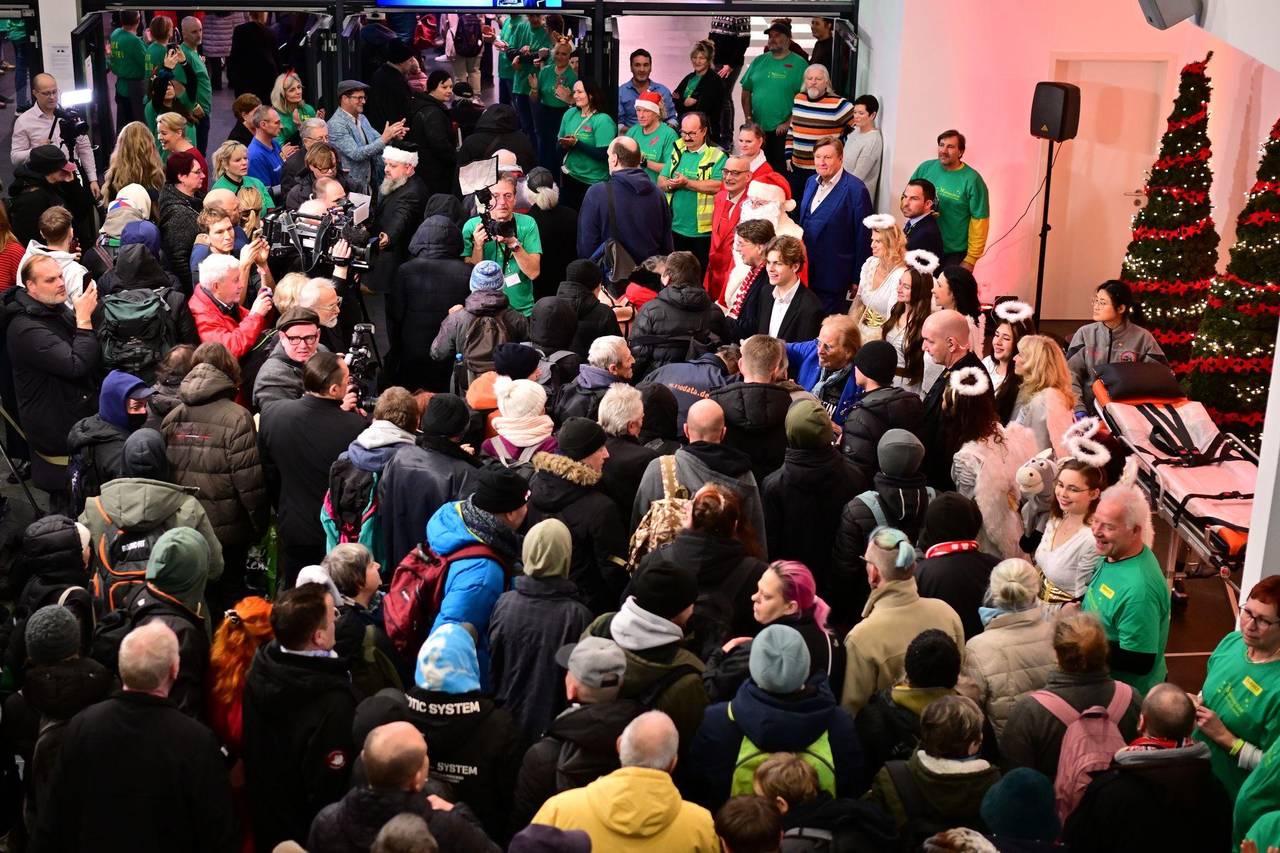 Berlin (dpa) - Zum traditionellen Weihnachtsessen für Obdachlose und Bedürftige haben Schlagerstar Frank Zander und seine Familie kurz vor den Feiertagen Hunderte Menschen empfangen. 2.500 Bändchen für Teilnehmerinnen und Teilnehmer seien ausgegeben worden, und sie seien wohl auch alle da, sagte Marcus Zander, der Sohn des Sängers.
