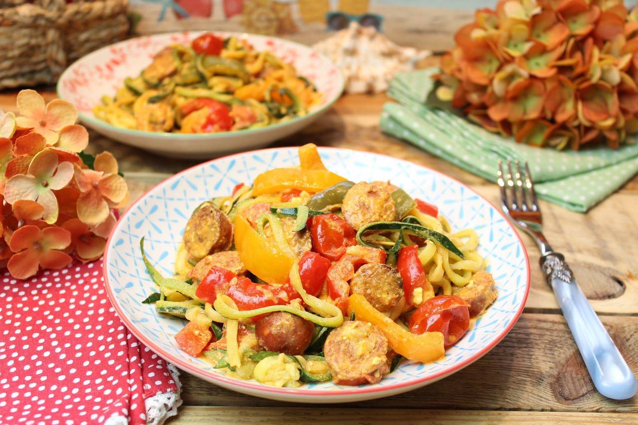 Bloggerin Meiselbach ist ein Fan von gebackenem Feta mit Pasta und Gemüse. Diese Vorliebe kombiniert sie zum Beispiel in ihrem Rezept Baked Feta mit Chorizo und Zucchininudeln. Während auf einem Blech im Backofen Kirschtomaten, Paprikastreifen, Chorizoscheiben und Fetastücke mit Olivenöl, Salz und Pfeffer etwa 30 Minuten vor sich hin schmurgeln, garen auf einem zweiten Blech in nur 15 Minuten die Zucchinispaghetti. Mit Safran abschmecken - fertig ist das Gemüsepasta-Gericht.