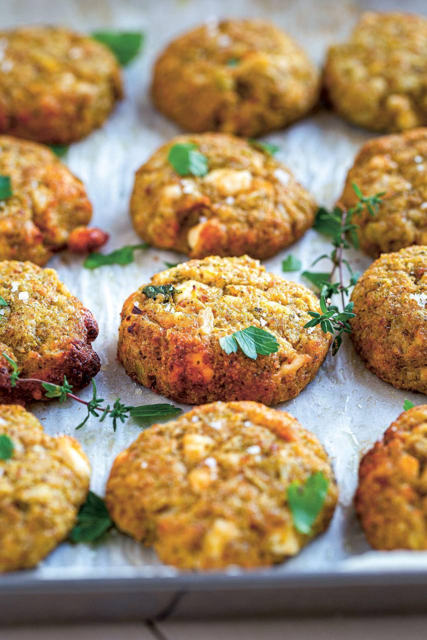 Auch in Comars knusprigen Brokkolitalern zeigt Feta seine cremige Seite. Die vorgegarten Brokkoliröschen werden dafür mit zerbröseltem Feta, Parmesan, Knoblauch, Zwiebel, Ei, Pfeffer und Salz vermengt. Ein paar Semmelbrösel sorgen bei Bedarf für die richtige Konsistenz der Bällchen, die dann im Ofen gebacken werden, bis sie goldbraun und knusprig sind.