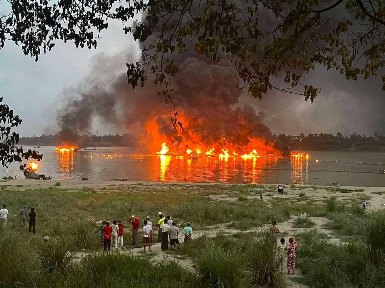 Die Flammen griffen daraufhin schnell auf viele andere Schiffe und Boote sowie auf Fahrzeuge im Hafen über. Das Unglück habe sich am frühen Montagabend (Ortszeit) in Homalin in der Region Sagaing ereignet, teilte die Feuerwehr mit. Auf im Internet verbreiteten Videos war zu sehen, wie eine gewaltige schwarze Rauchsäule in den Himmel stieg.