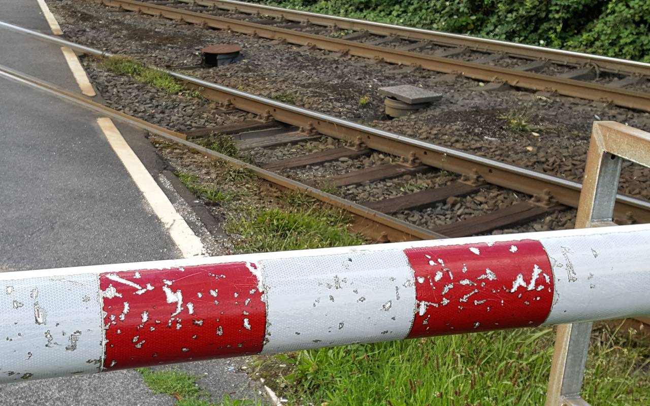 Güterzug blockierte Bahnübergang in Brühl-Ost