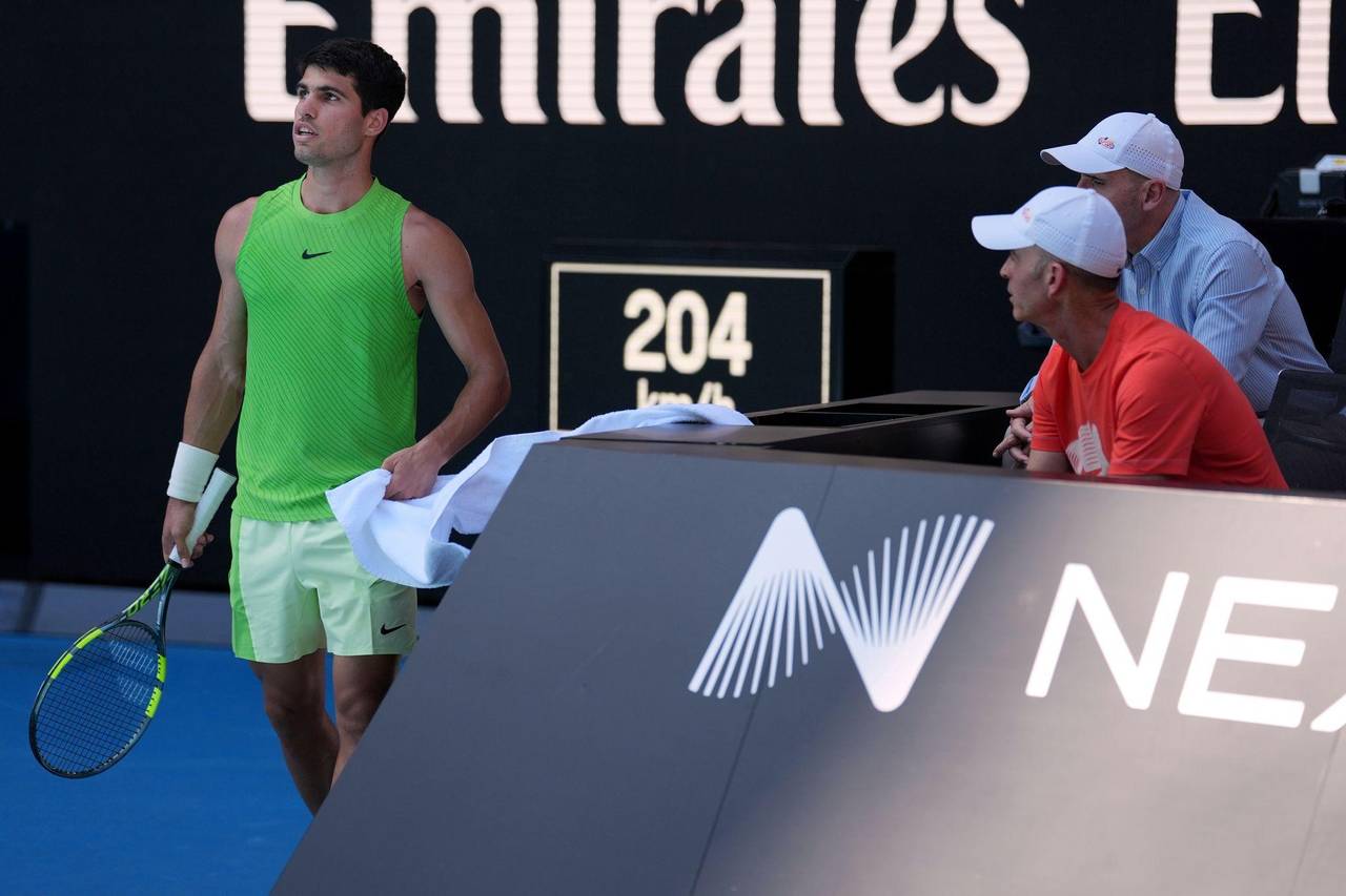 Dabei hatte der Weltranglisten-Erste ab Ende des dritten Satzes mit großen körperlichen Problemen zu kämpfen. Zwar waren die Temperaturen in Melbourne mit etwas mehr als 30 Grad deutlich angenehmer als an den großen Hitzetagen mit bis zu 45 Grad zuvor. Dafür war es sehr schwül, was Alcaraz offensichtlich große Probleme bereitete.