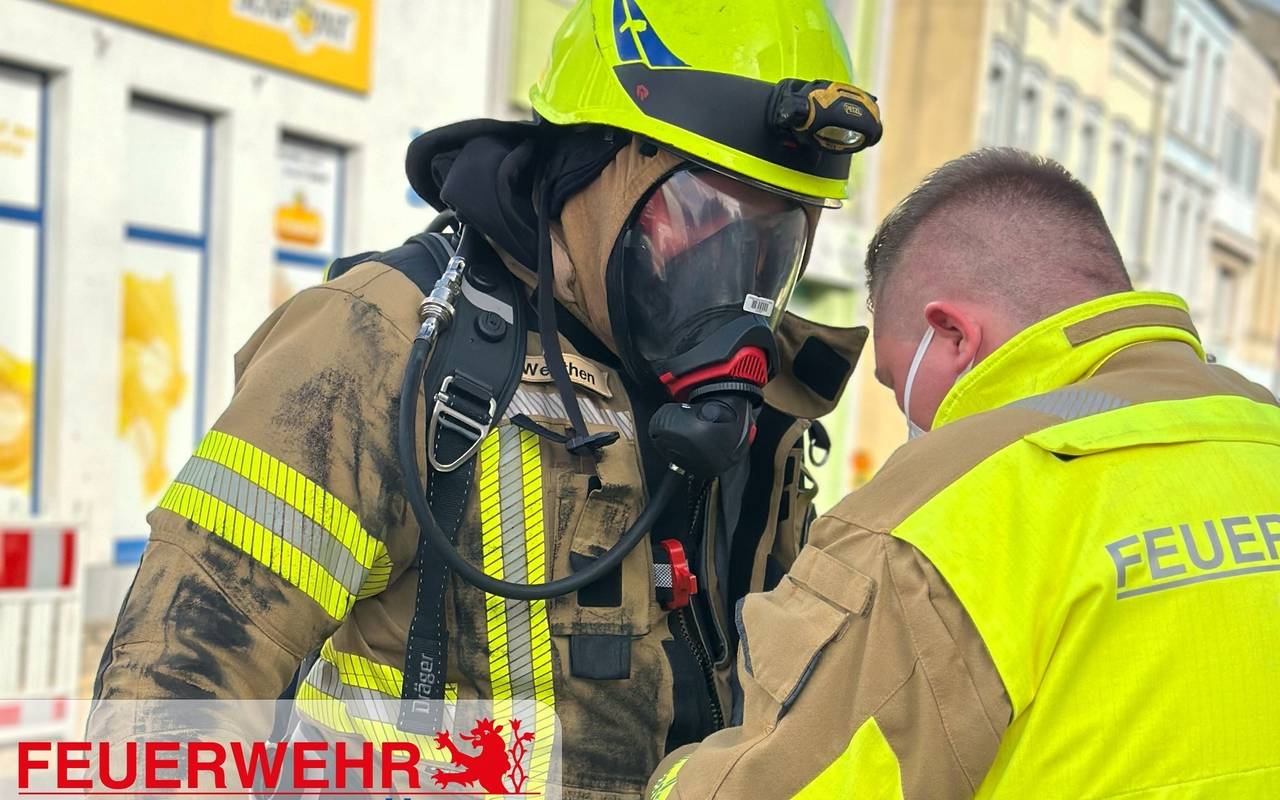Großeinsatz der Feuerwehr in Bedburg. Dort musste am Montagmittag eine Bewohnerin aus einer brennenden Wohnung gerettet werden. Sie kam mit lebensgefährlichen Verletzungen in eine Klinik. Das Haus ist wahrscheinlich einsturzgefährdet.