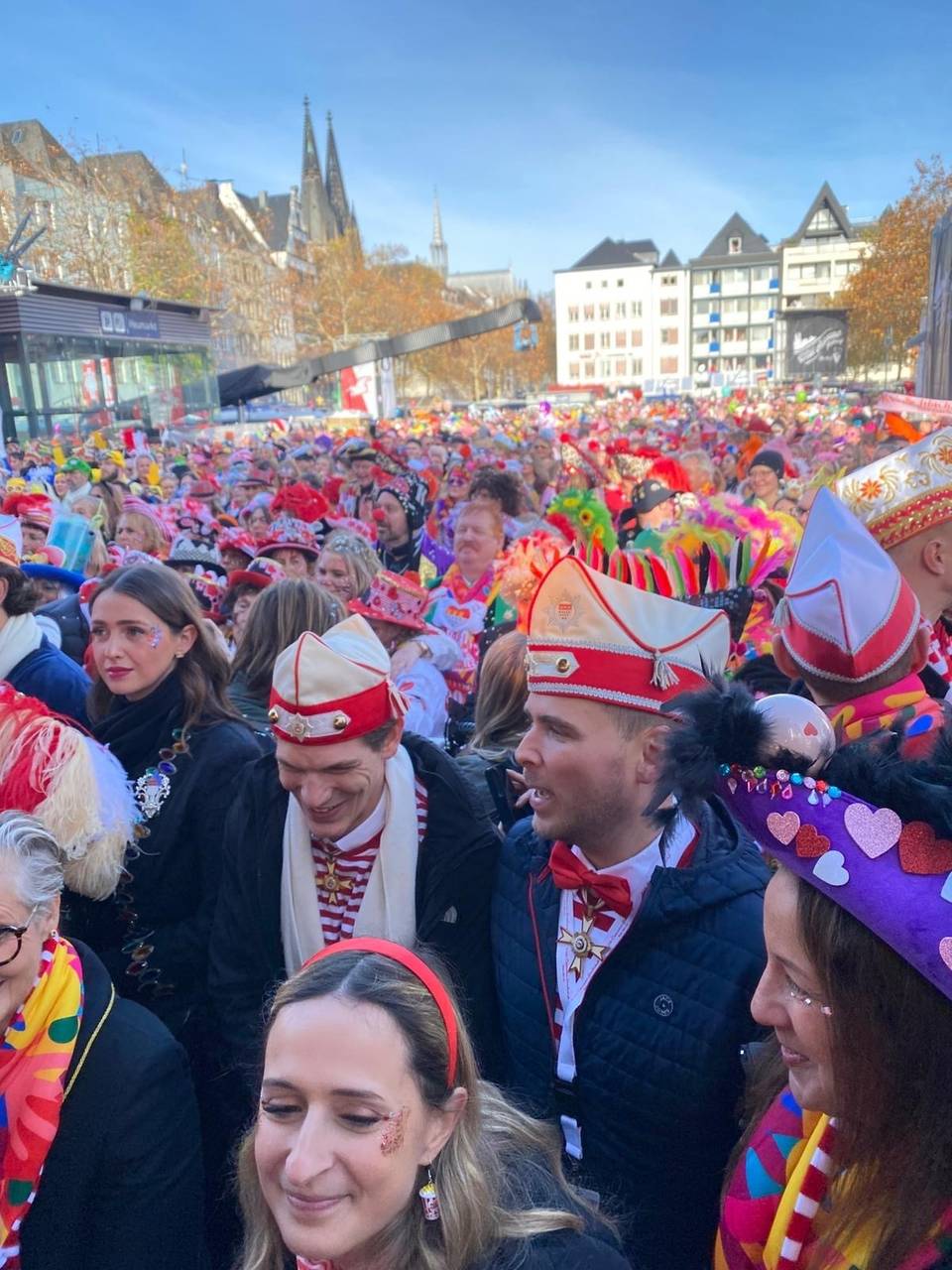 Köln schunkelt in die neue Session. Erste Plätze waren am Mittag bereits überfüllt. Pünktlich um 11.11 Uhr ist der Startschuss für die neue Session gefallen. Angeführt werden die Jecken von Prinz Niklas I., Bauer Clemens und Jungfrau Aenne.